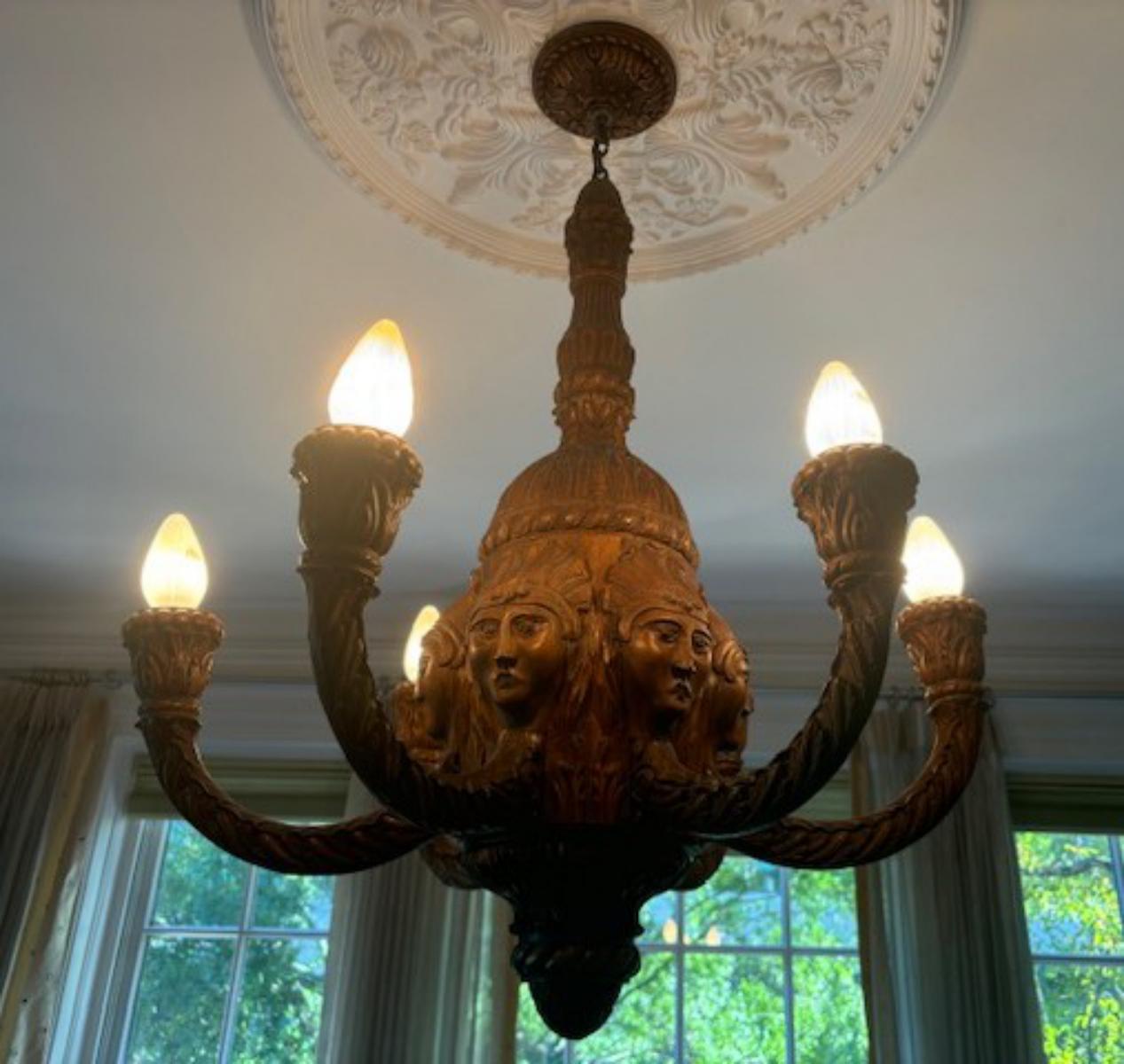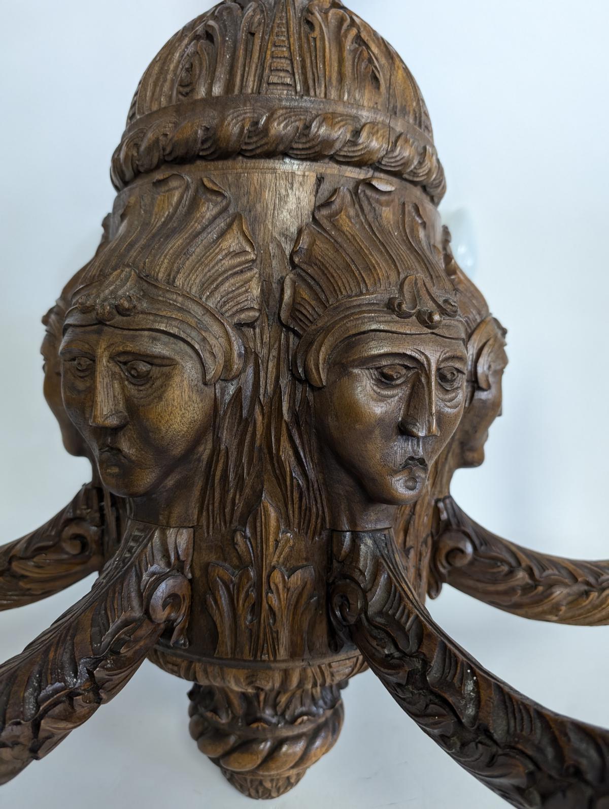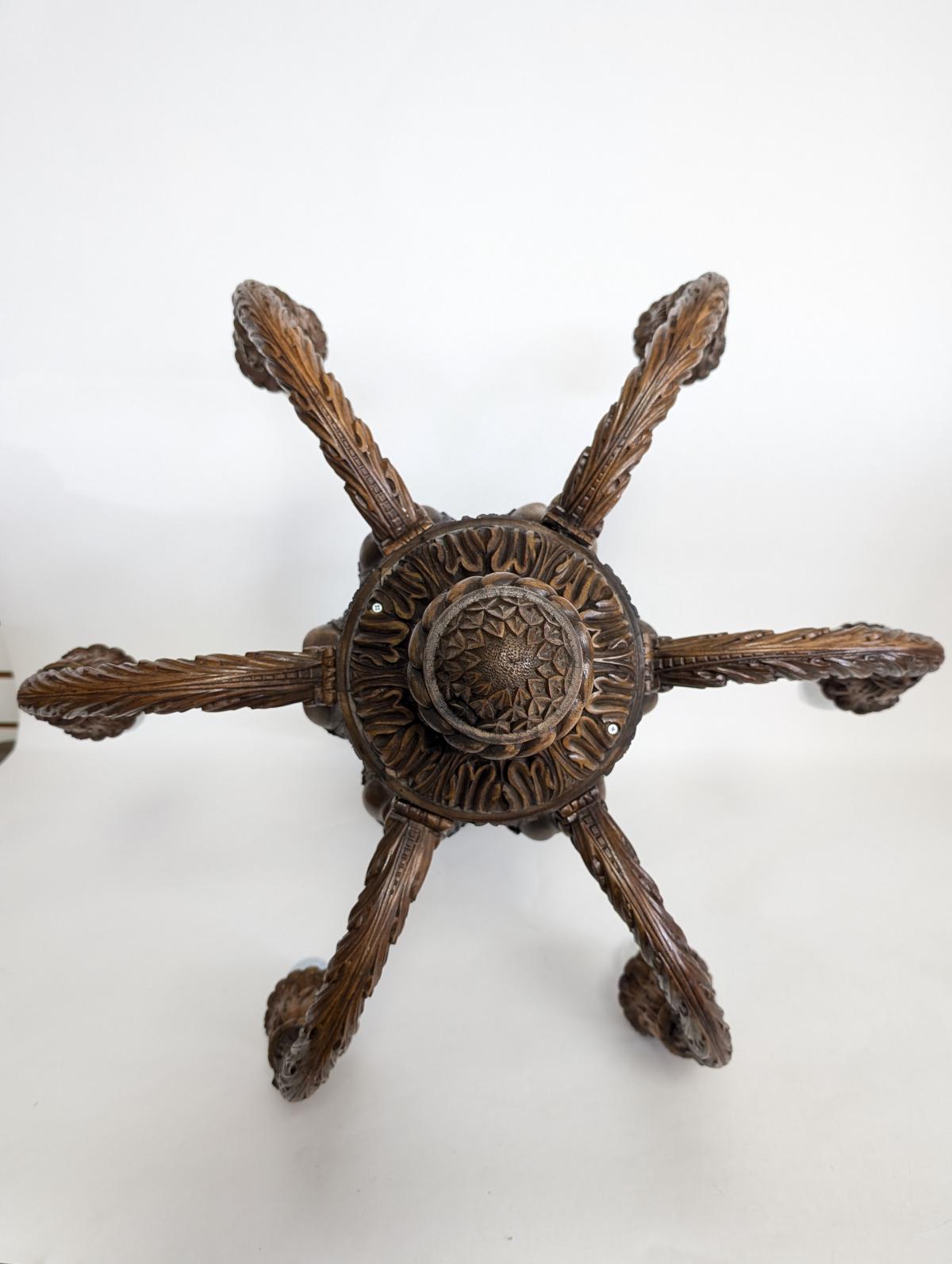 | FEATURES: | Magnificent Antique Carved Wood 6 Arm Chandelier, 30.5"H |