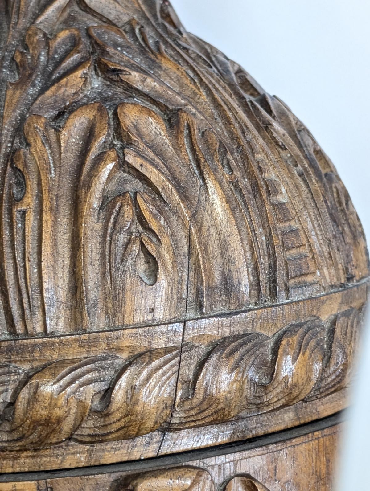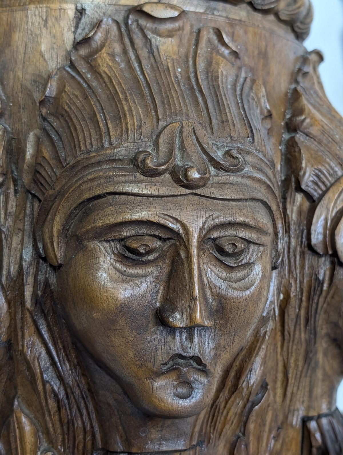 This rare element (faces in wood) appeared in his royal throne carvings and other prestige commissions.