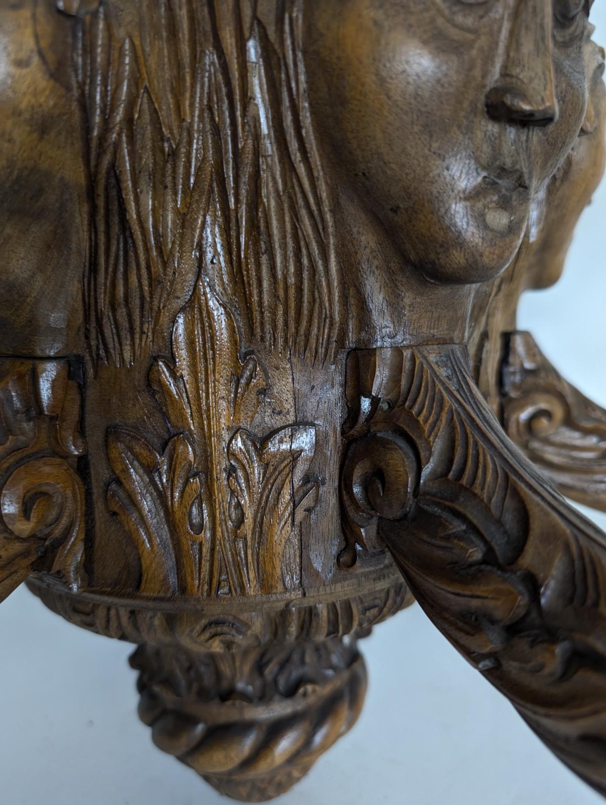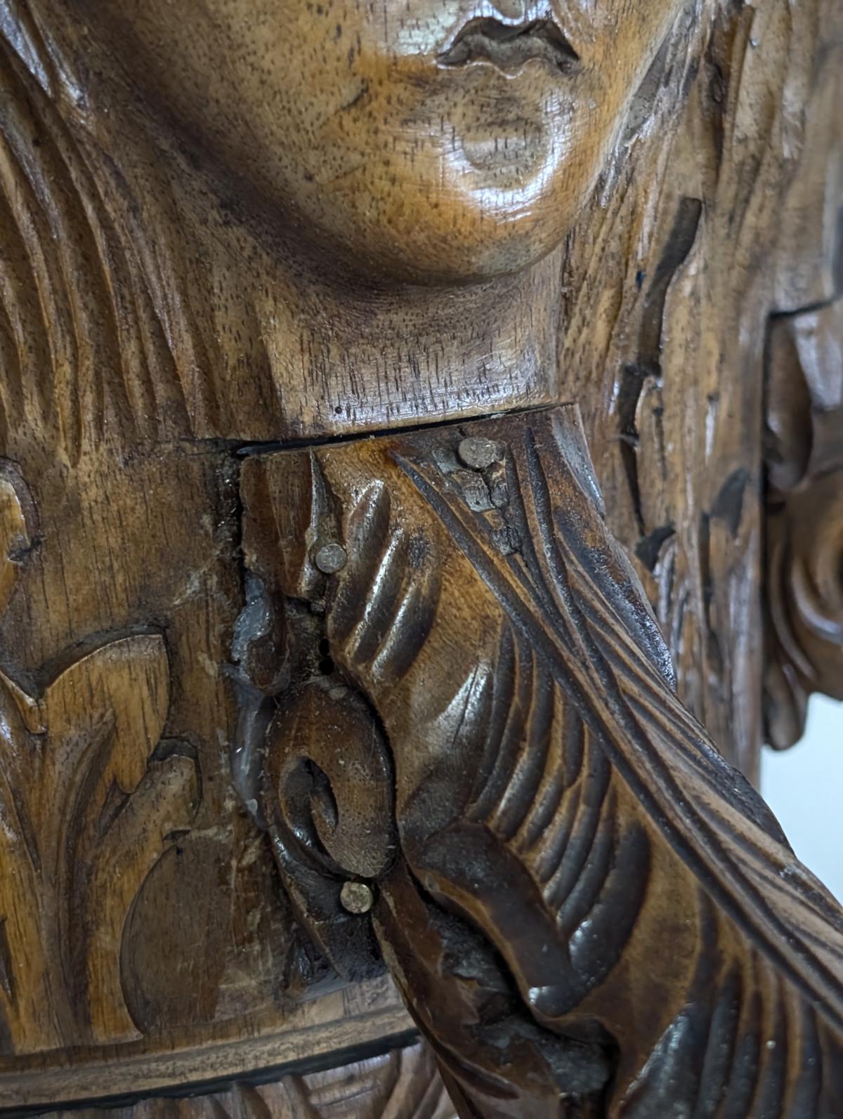 Faces Incorporated into Woodwork: