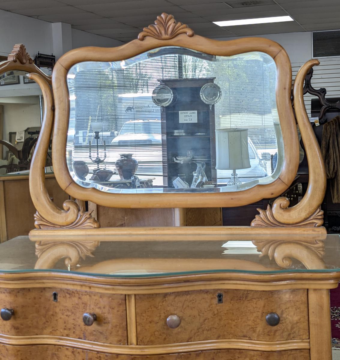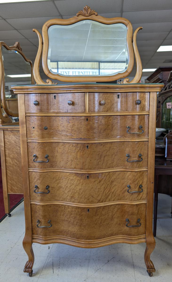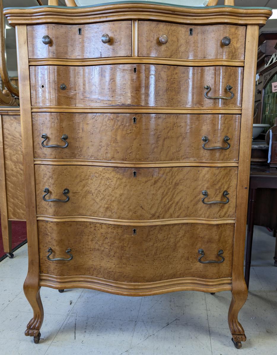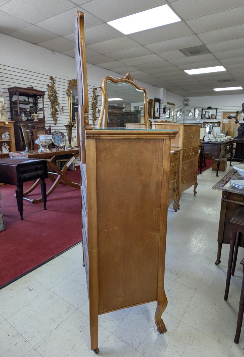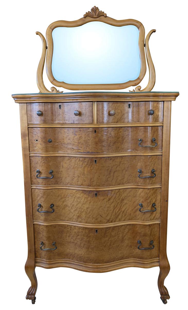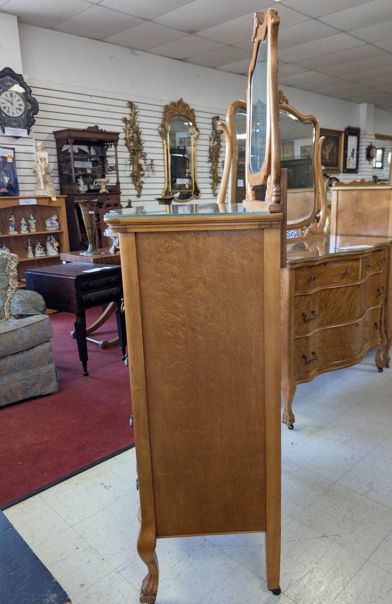 Antique French Provincial Burlwood Dresser with Mirror, Claw Feet & Serpentine Front