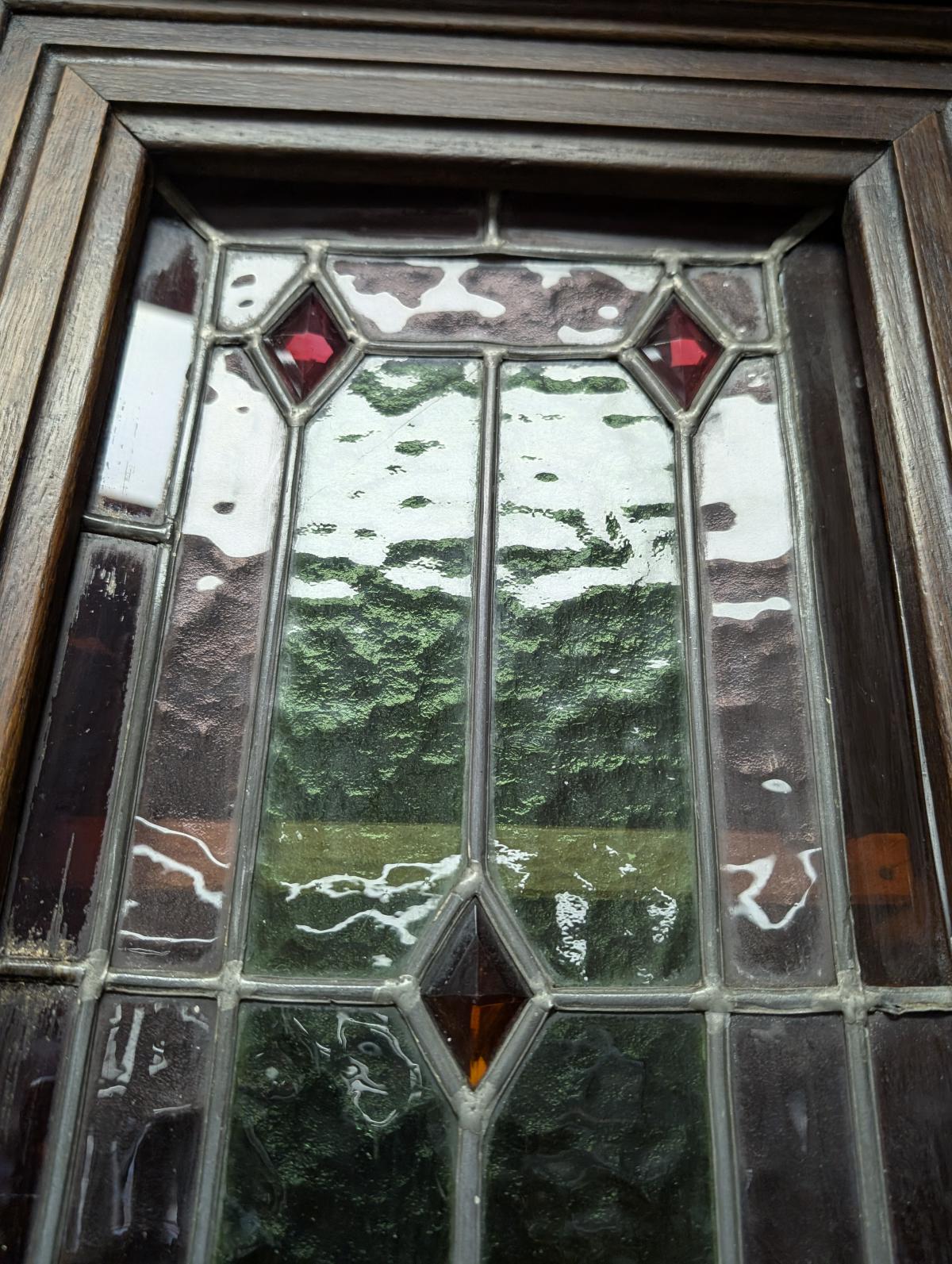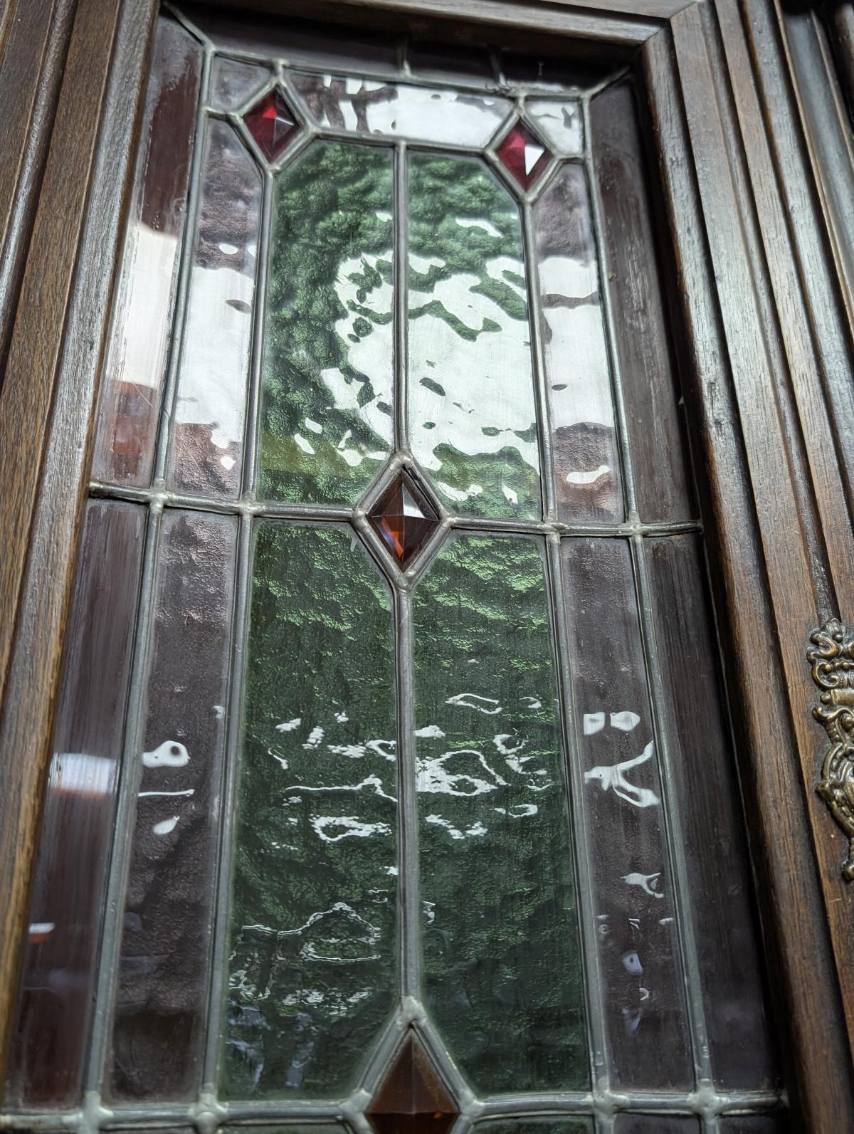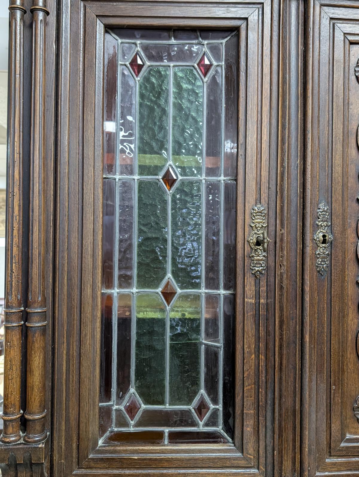 Antique Henri II Carved Buffet, Cupboard, Stained Glass, Oak