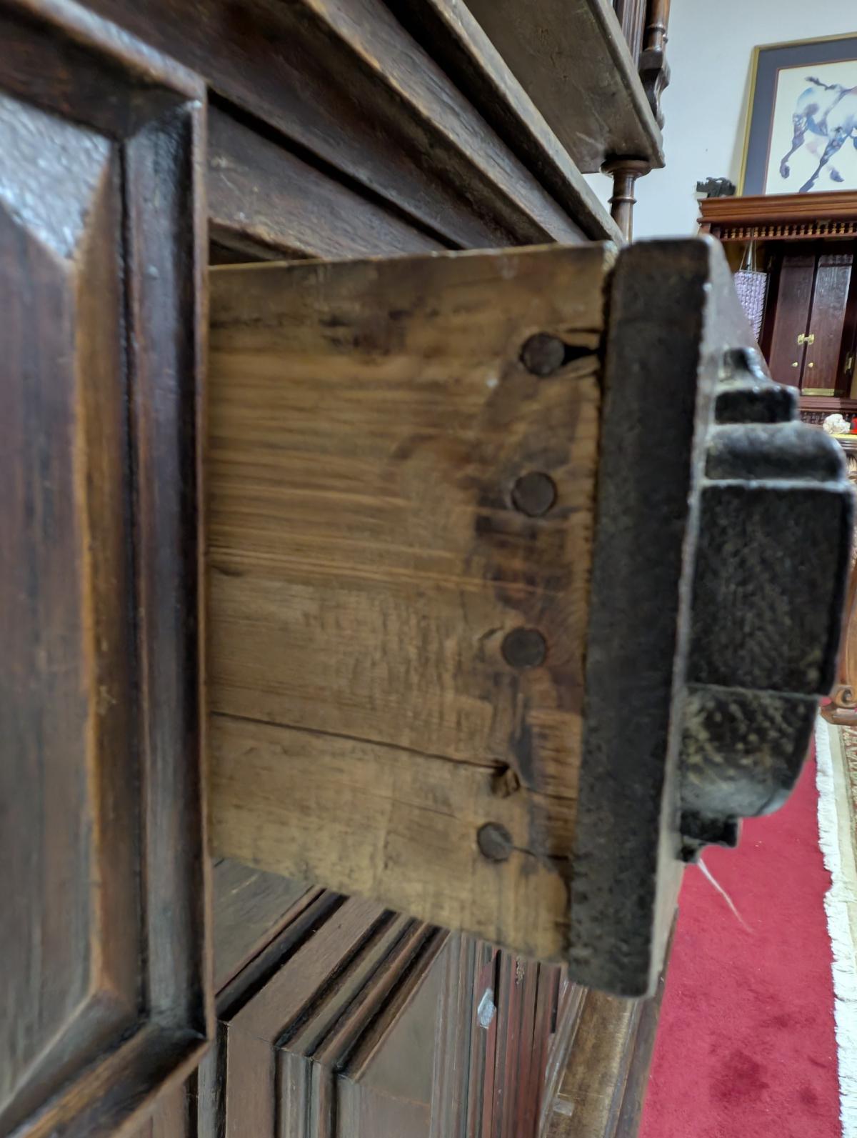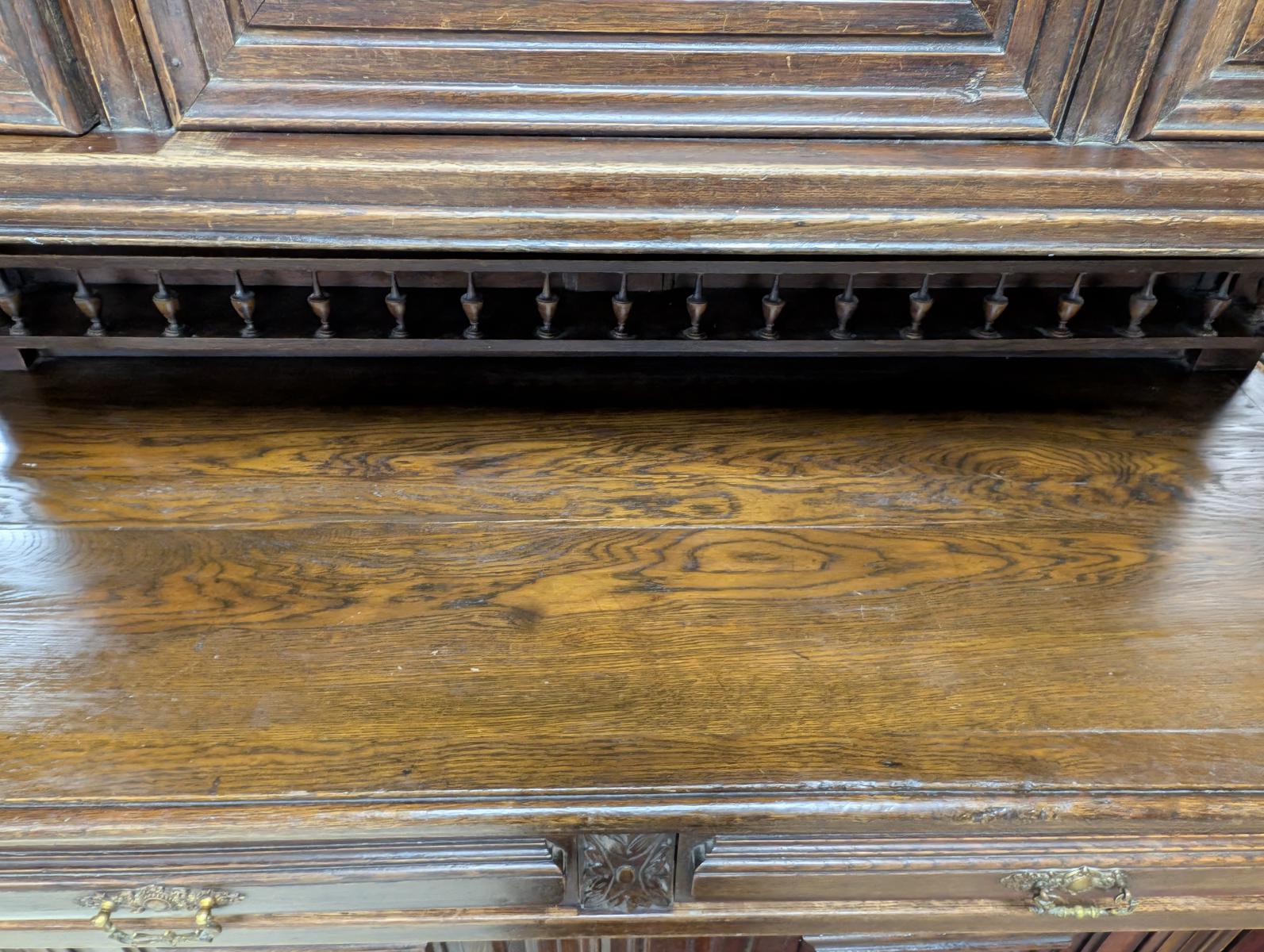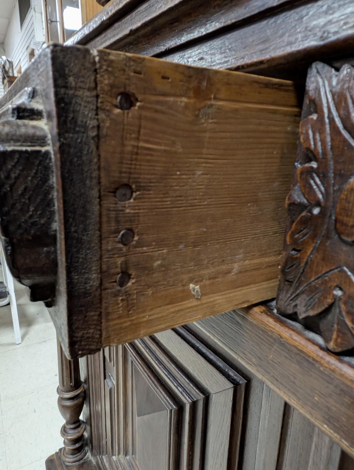 | FEATURES: | Antique Henri II Carved Buffet, Cupboard, Stained Glass, Oak, 96.5"H |
