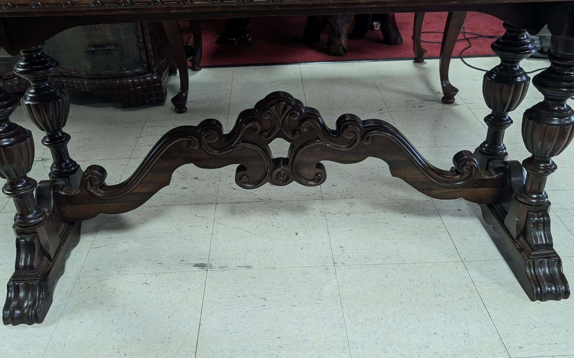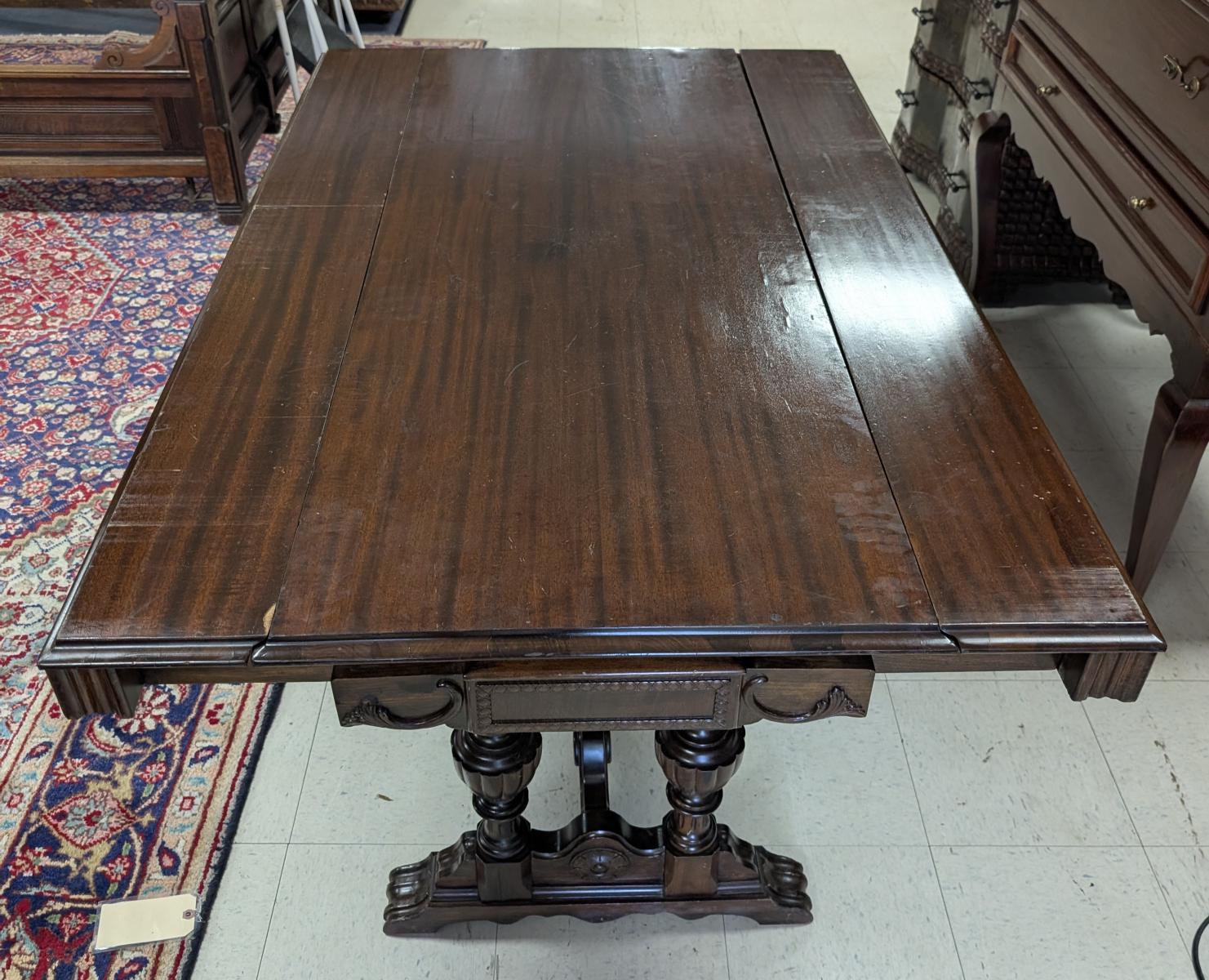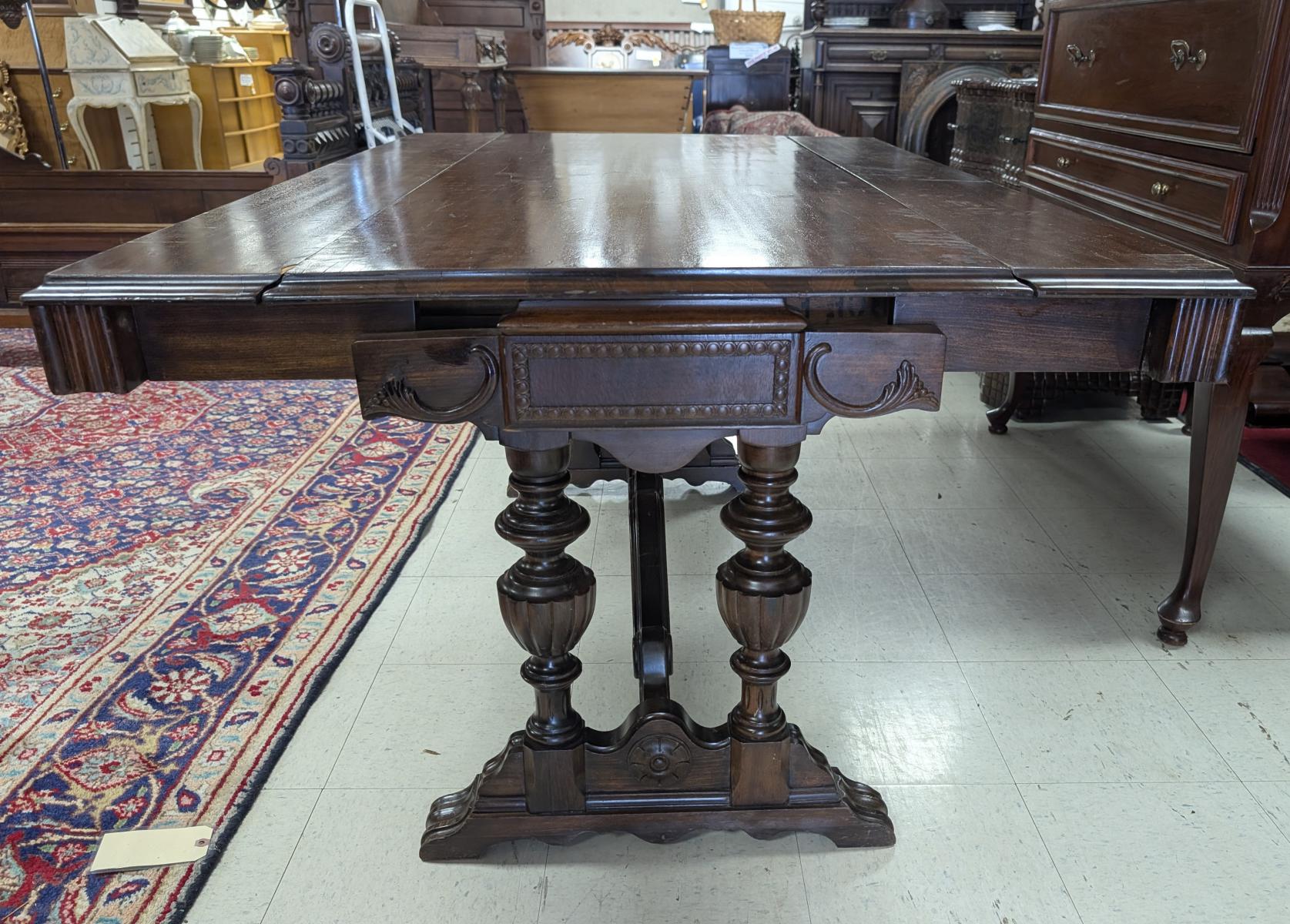 | FEATURES: | Antique Jacobean Style Expanding Library Table, Mahogany, 30"H |