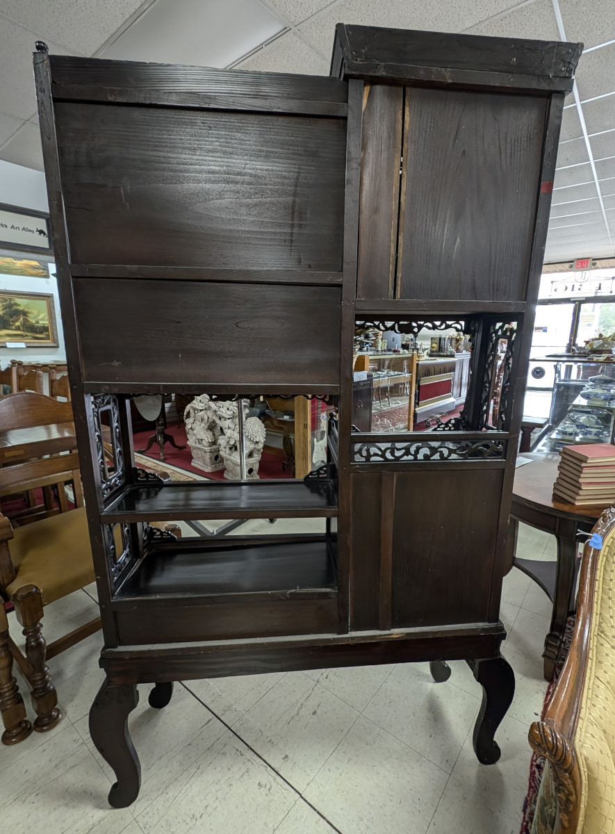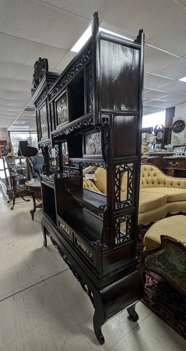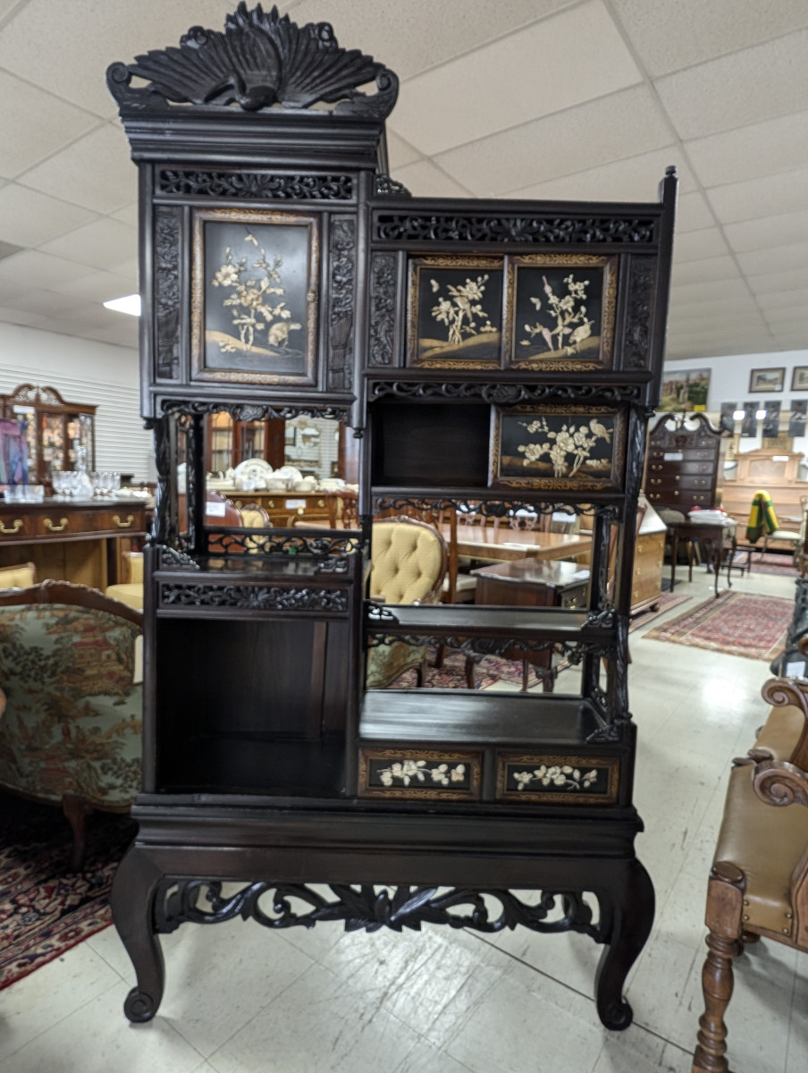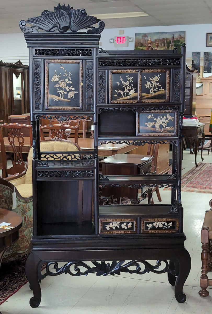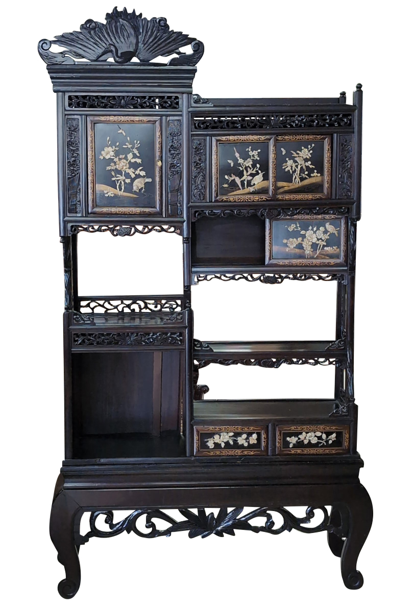 | FEATURES: | Antique Japanese Meijing Shibayama Cabinet Etagere, 79.5″H |