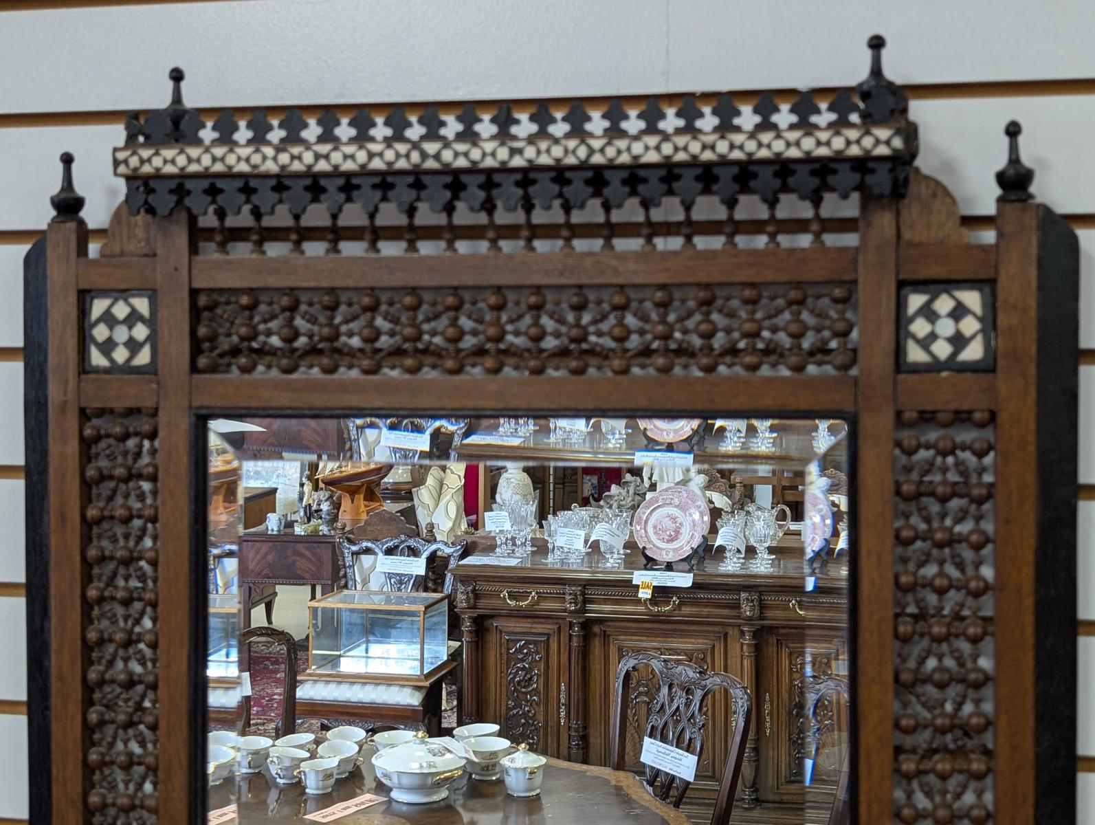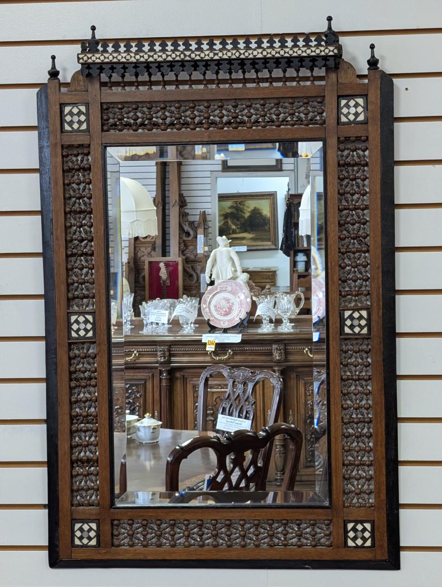 | FEATURES: | Antique Moroccan Wood/Inlaid Bone Mirror, 38"H |