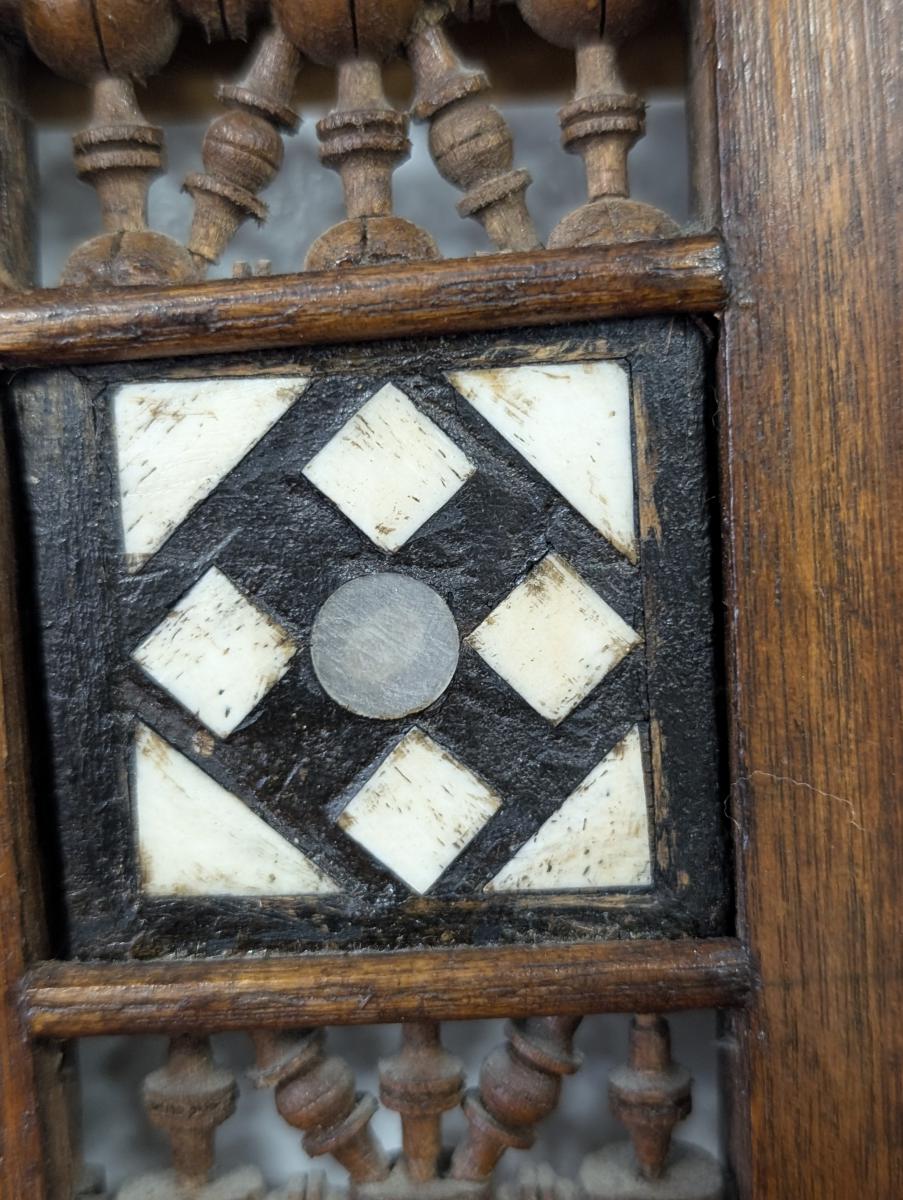 Antique Moroccan Wood/Inlaid Bone Mirror, 38″H, PA6707