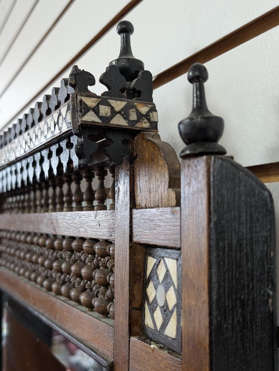 Antique Moroccan Wood/Inlaid Bone Mirror