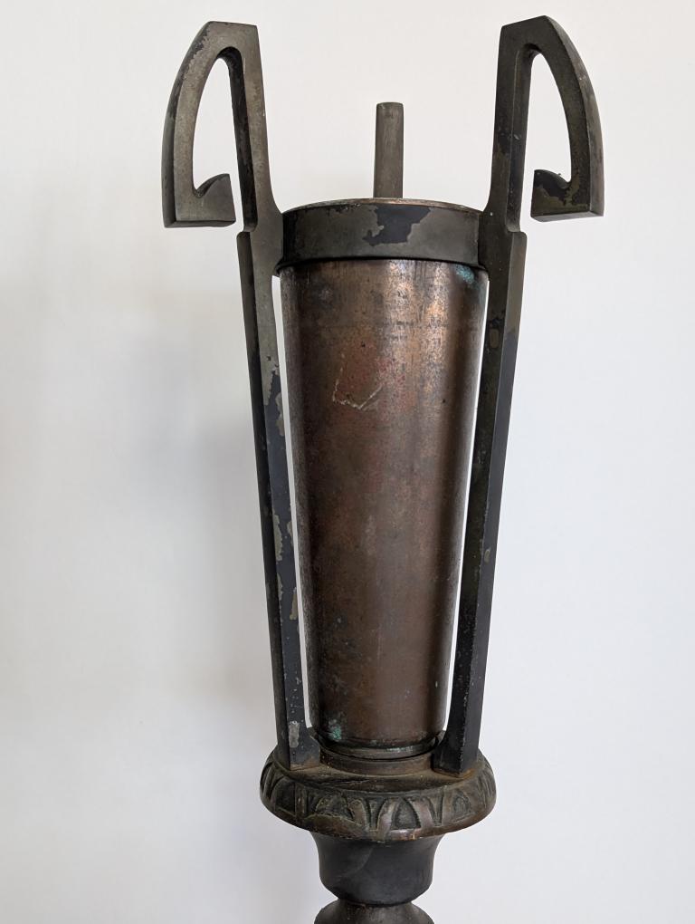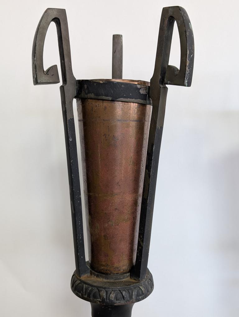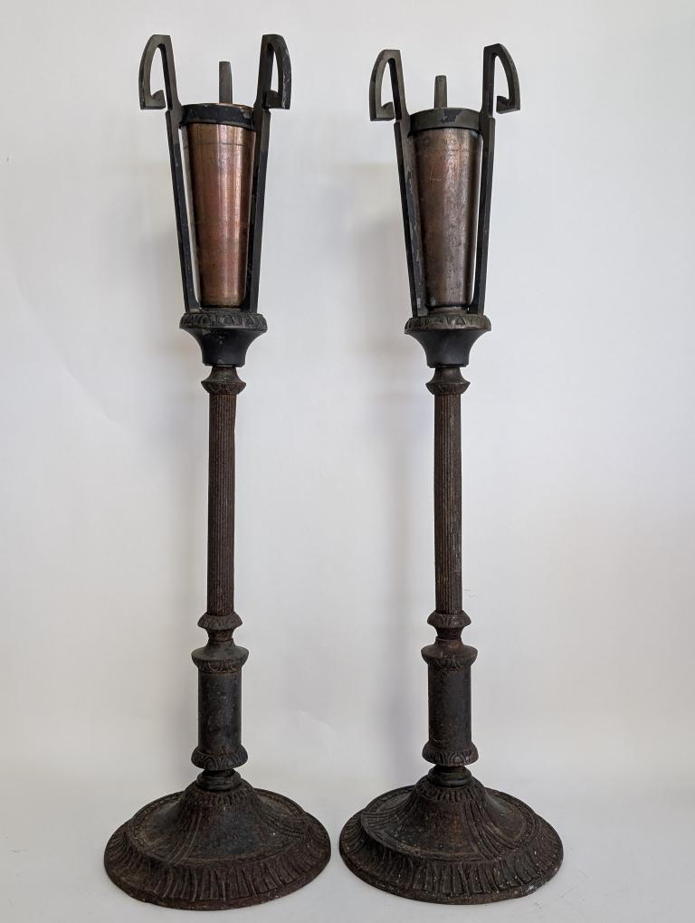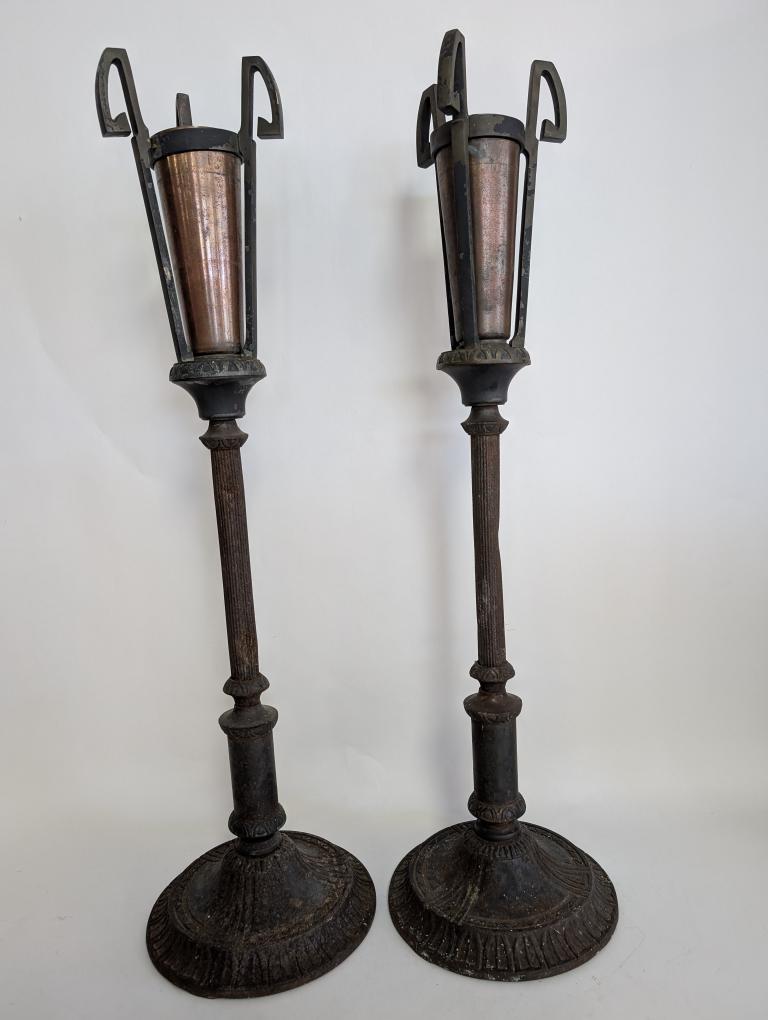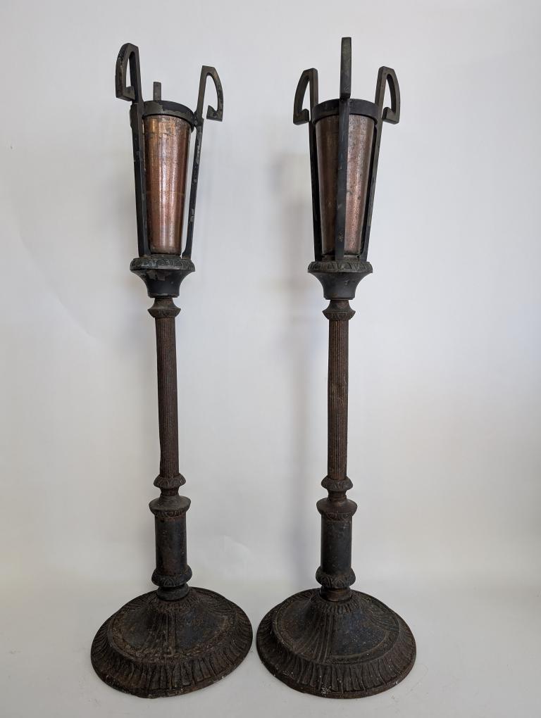 | FEATURES: | Antique Pair of Bronze, Copper Torchiere Vases, Art Deco, 36.5"H |