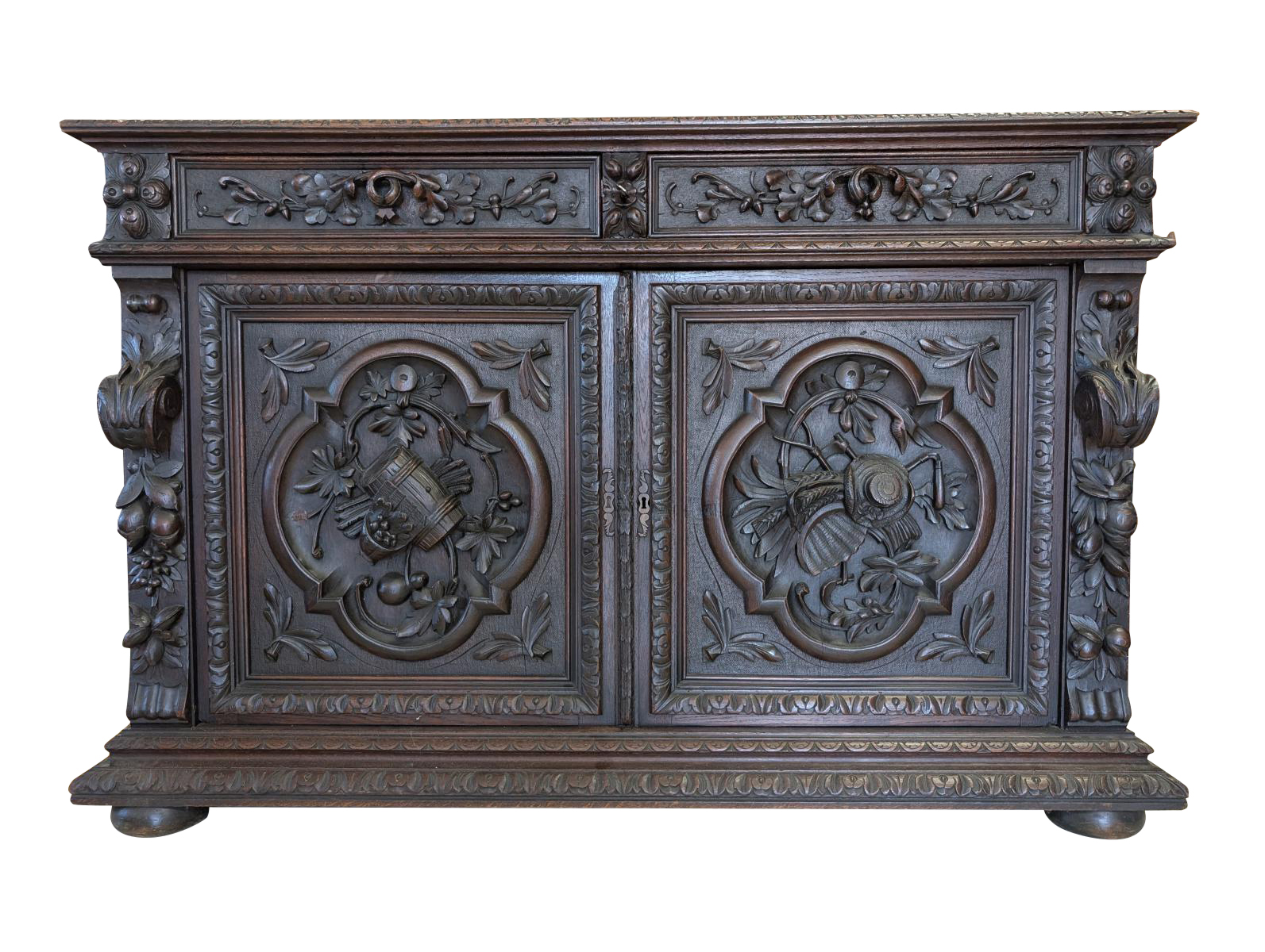 Antique Renaissance Revival Buffet, Hunt Board, Oak