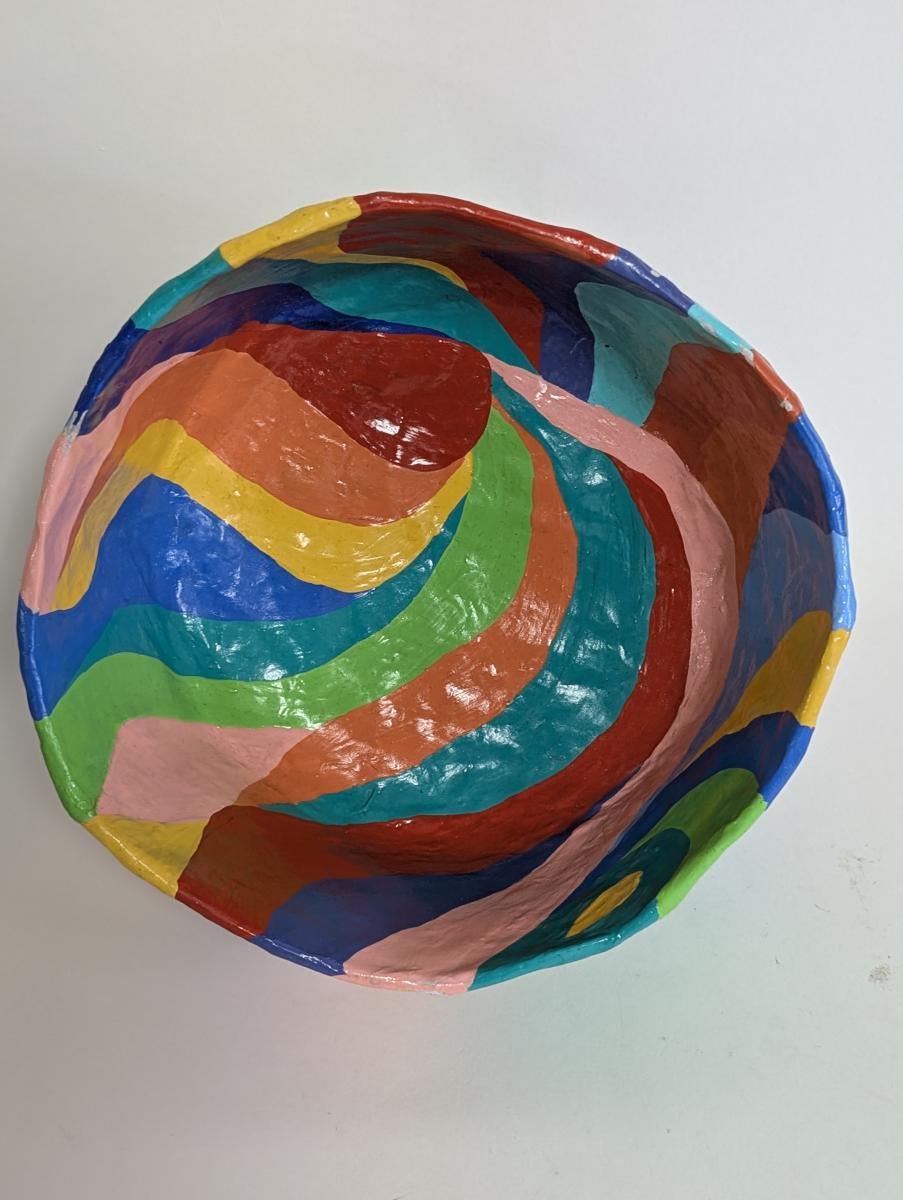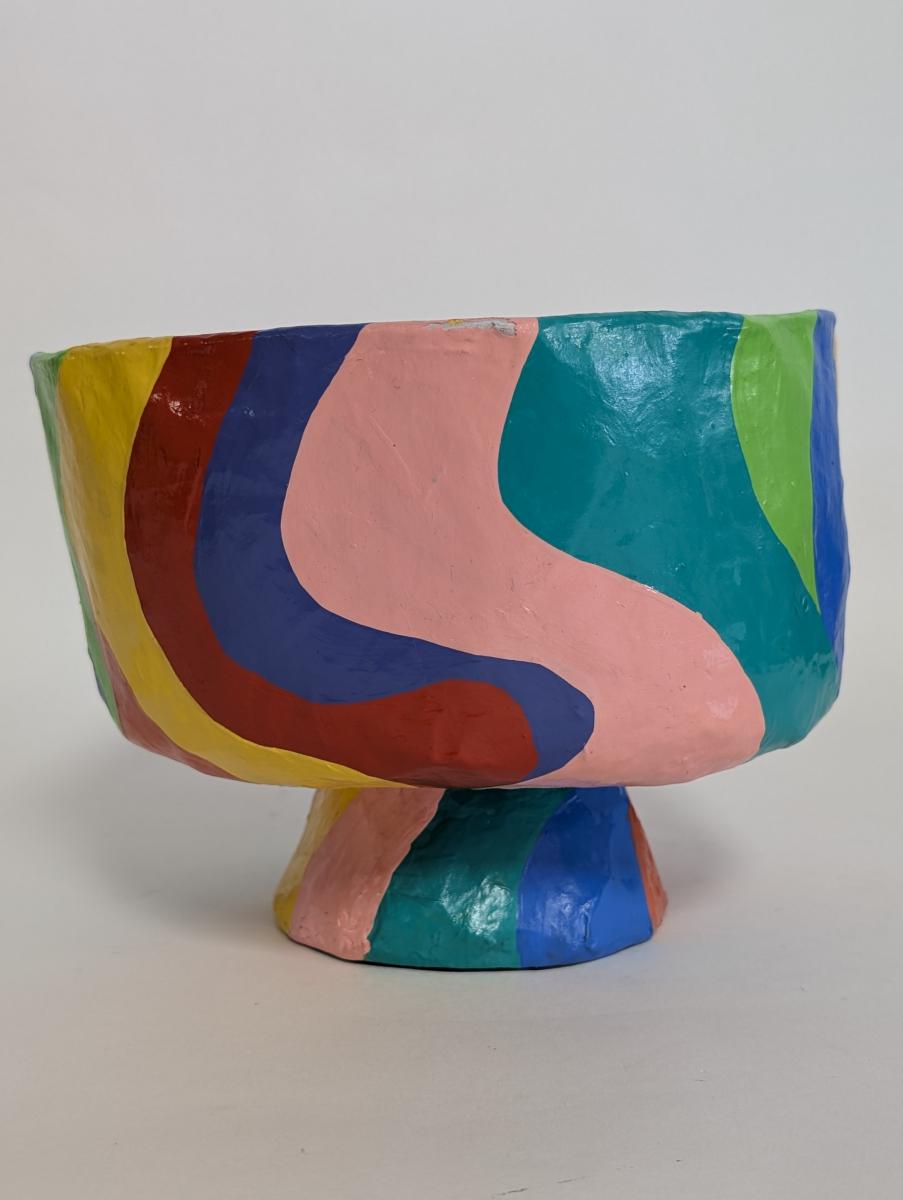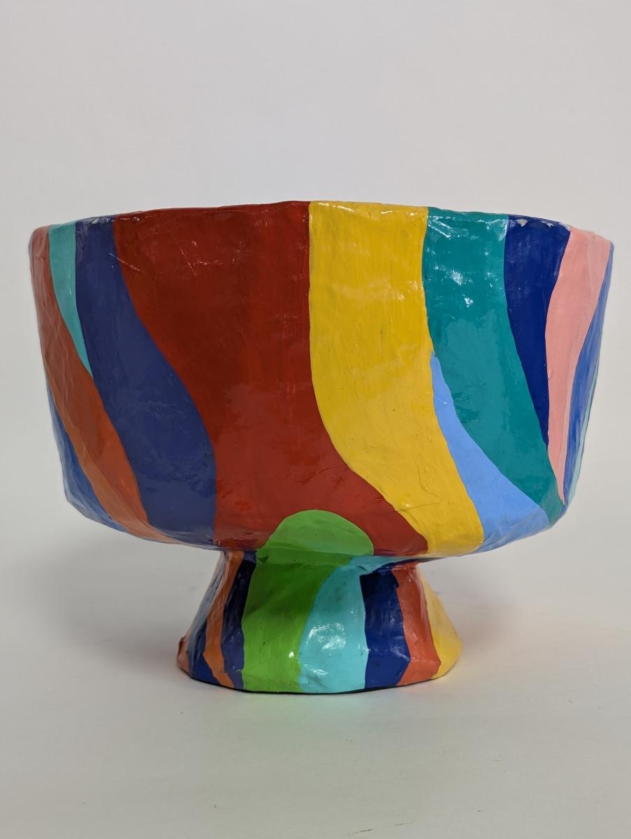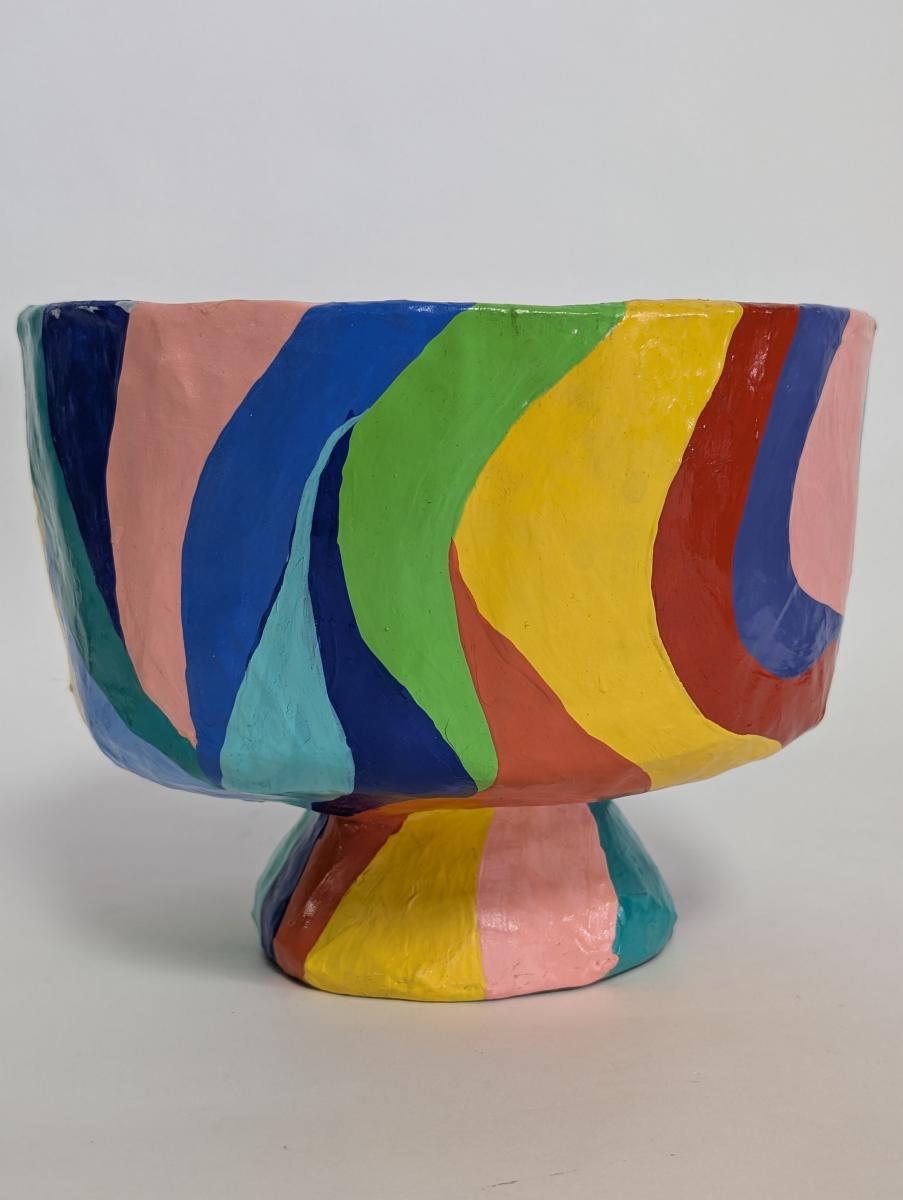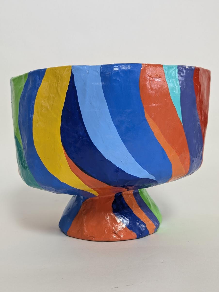 Art Deco Paper Mache Bowl, Colorful, 6.5″H, PA6743MD