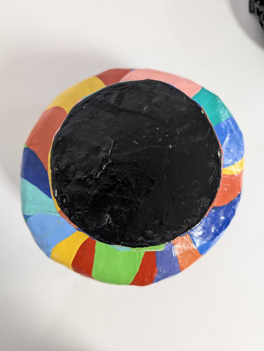 Beautiful and colorful! Fun piece for your home! Using the art of paper mache, Painted in vibrant colors. In great overall condition, a few signs of wear. See all photos. Measures: 6.5″H x 8.5″Diameter. Shipping within the US only. Shipping $19.95.