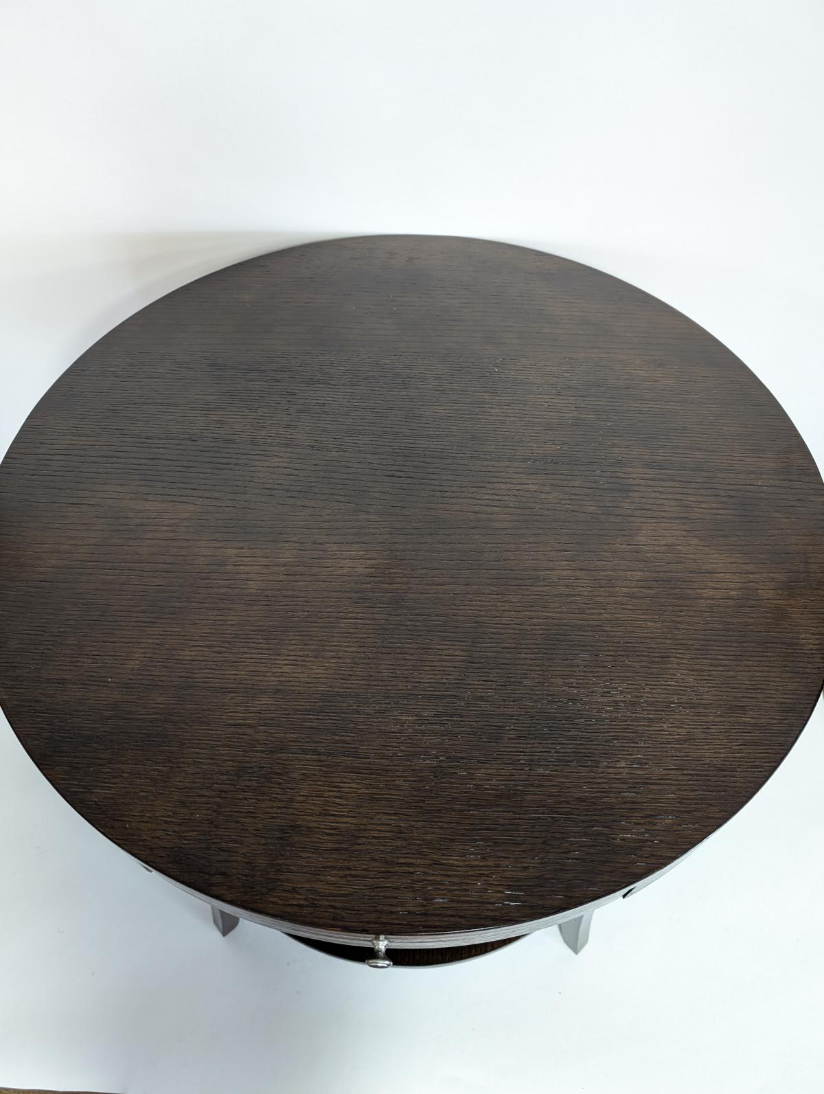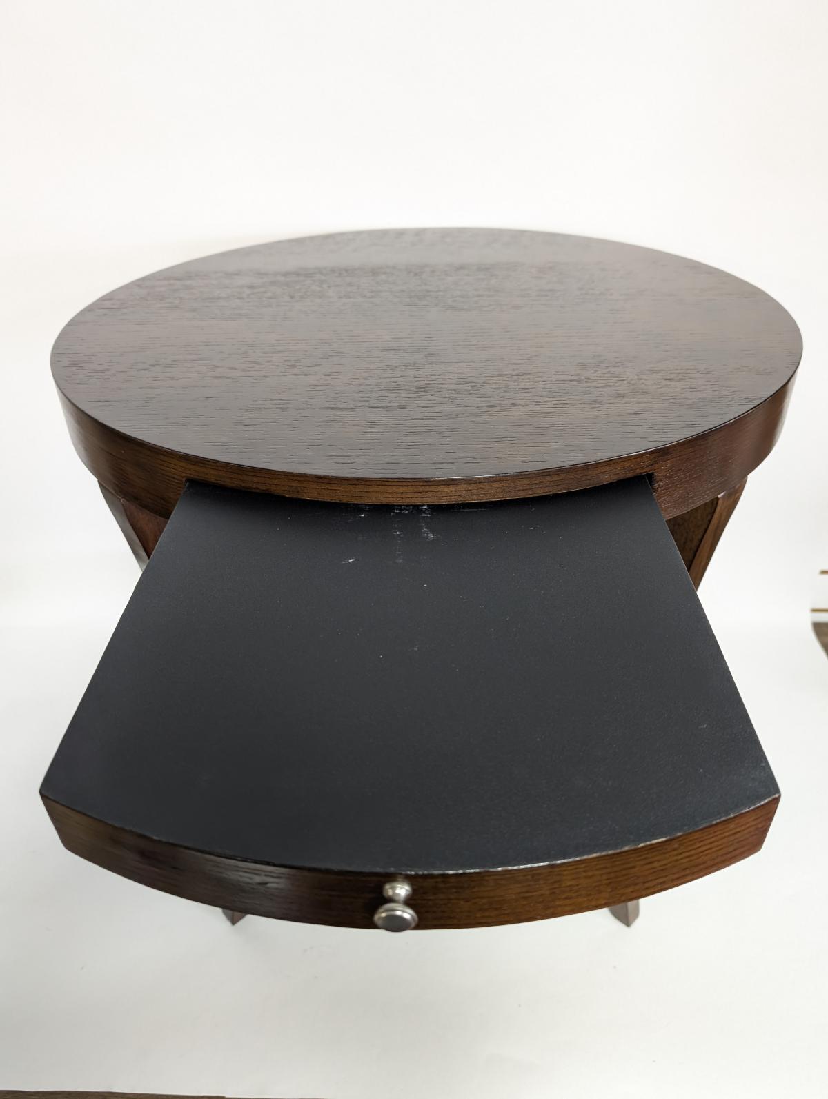 From Bassett Furniture, Side Table, Lamp Table, Wood, Round, Removable beveled glass top, Two display surfaces. In very good condition, very minor wear. See all photos. Measures: 25″H x 26″Diameter.