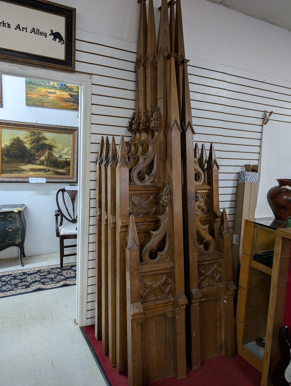 | FEATURES: | Early 19th Century Pair of Gothic Revival Architectural Pieces, Oak,109"H |