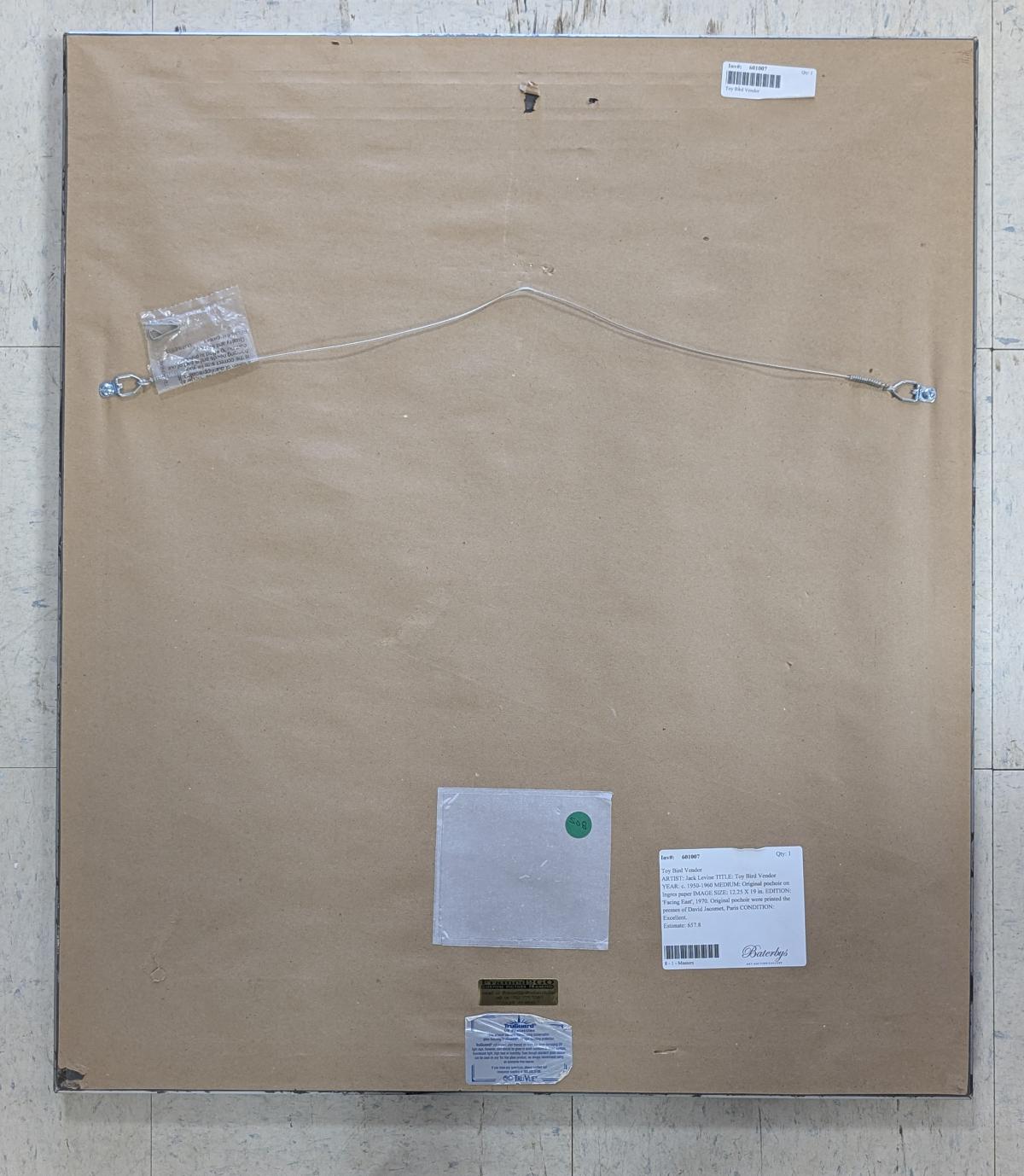Framed Art Title: Toy Bird Vendor Artist Name: Jack Levine Medium: Original pochoir on Ingres paper. Edition: ‘Facing East’, 1970 Original pochoir were printed the presses of David Jacomet, Paris, Frame: 30″ x 25.75″. Image Visual 15″ x 11″.Condition: Excellent. From a fine non-smoking estate. We buy entire showrooms and estates and liquidate them. Let us pass our savings along to you! If you are not picking up at our Oakwood, Ga. store, this will ship for $29.95 flat to 48 states. Additional charges will apply for shipping outside the 48 states. We have an extensive inventory of antique furniture, high end new unused floor sample furniture, art, rugs, and collectibles.