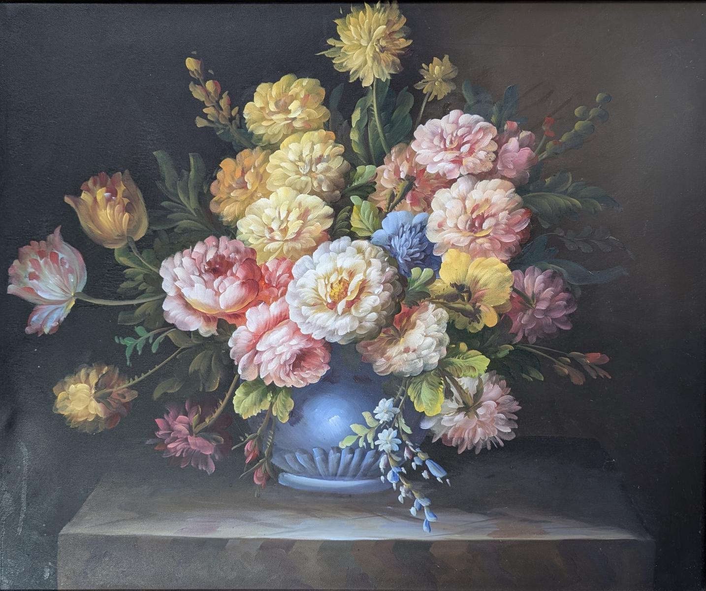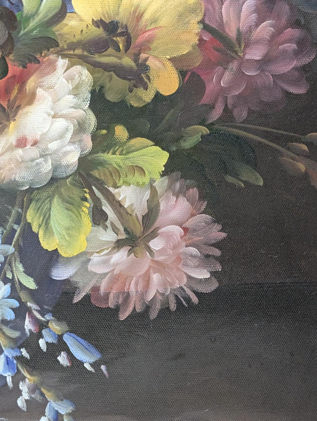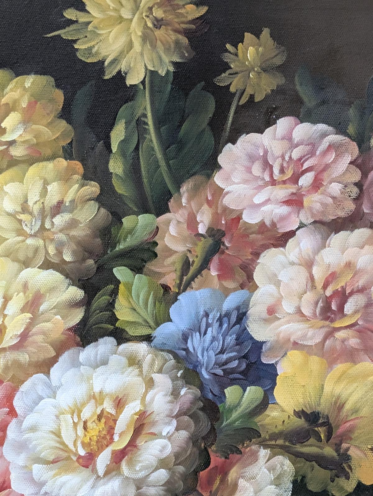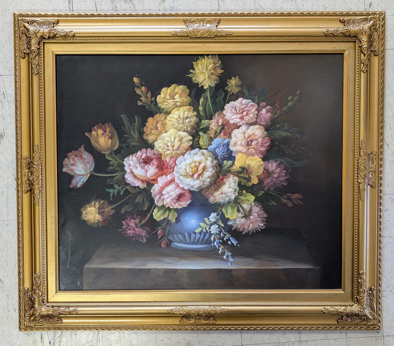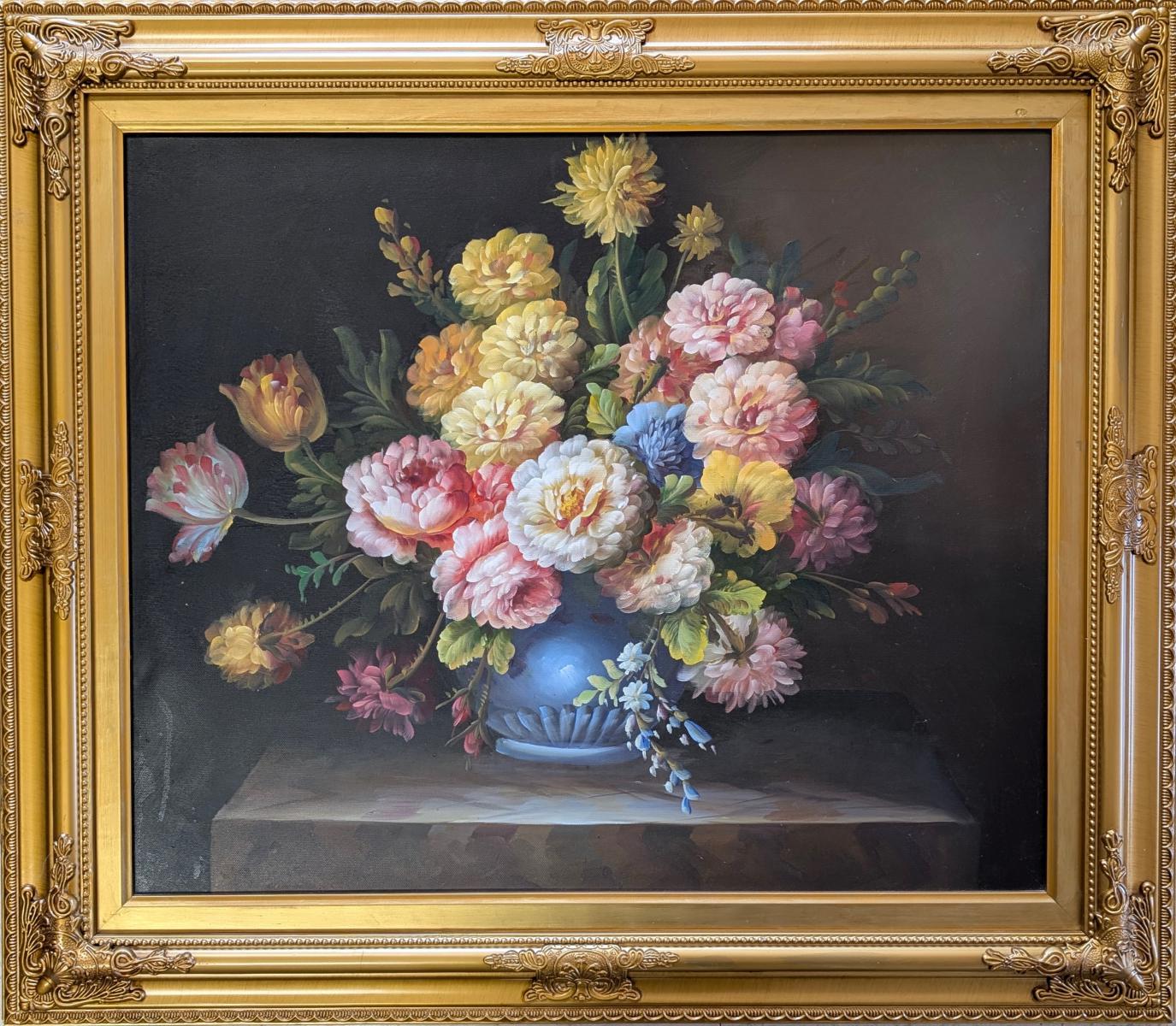 Oil On Canvas Floral, Gold Gilt Frame
