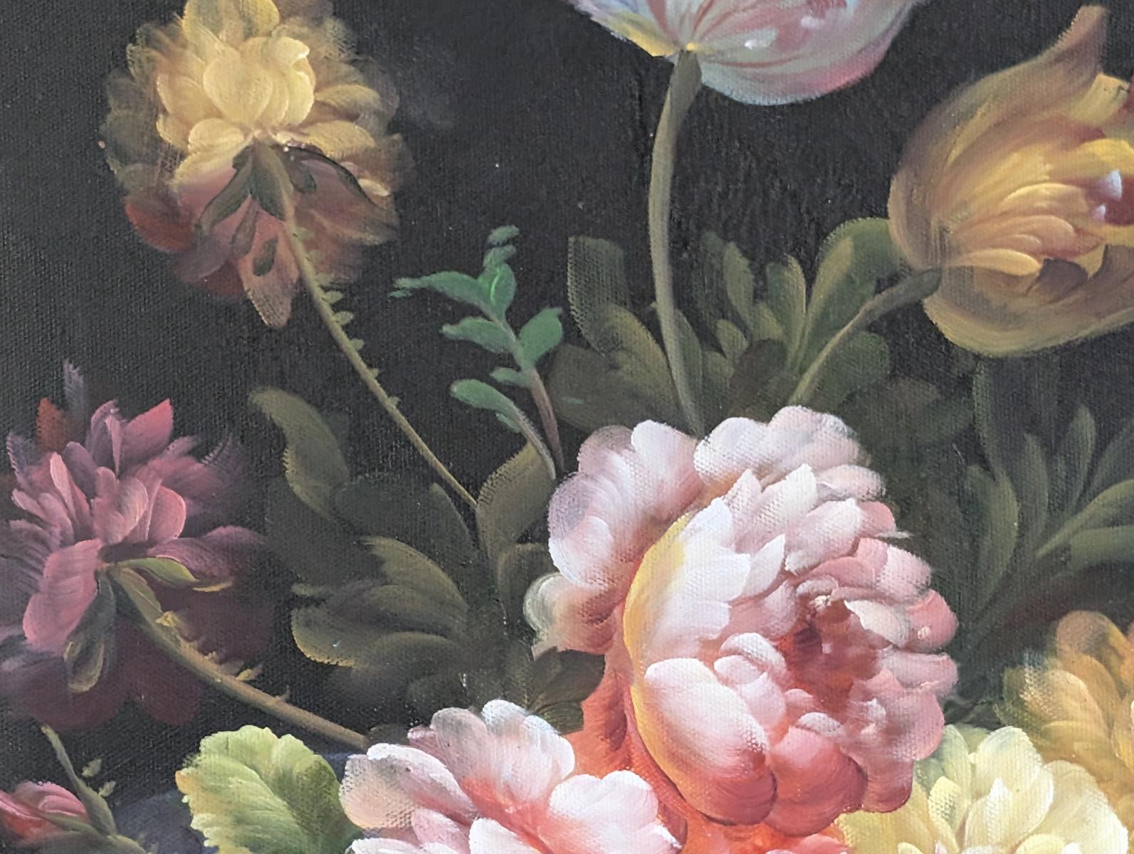 | FEATURES: | Gorgeous Oil On Canvas Floral, Gold Gilt Frame, 22"x26" |