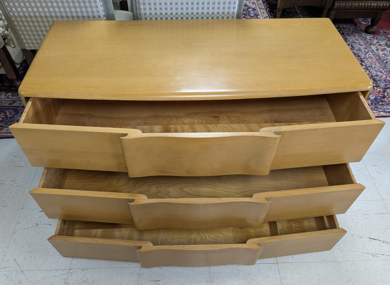 Heywood Wakefield Mid Century 3 Drawer “Sculptura” Dresser, Birch, 30.5″H, PA6718MD