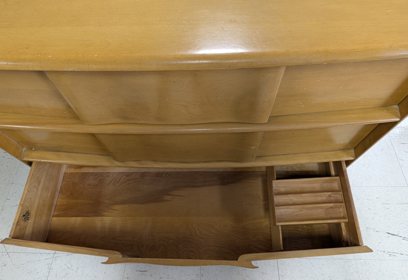 | FEATURES: | Heywood Wakefield Mid Century 4 Drawer "Sculptura" Dresser, Birch, 39"H |
