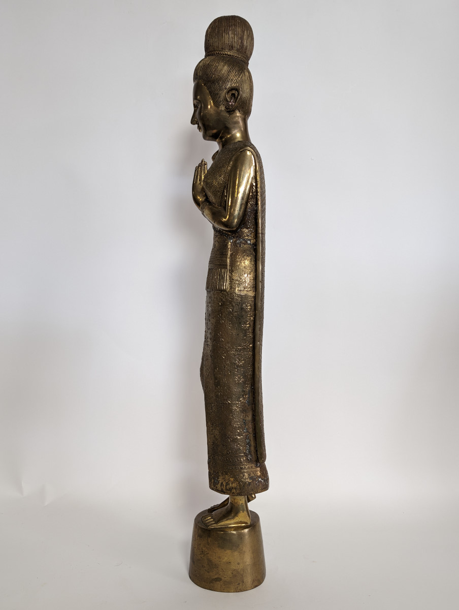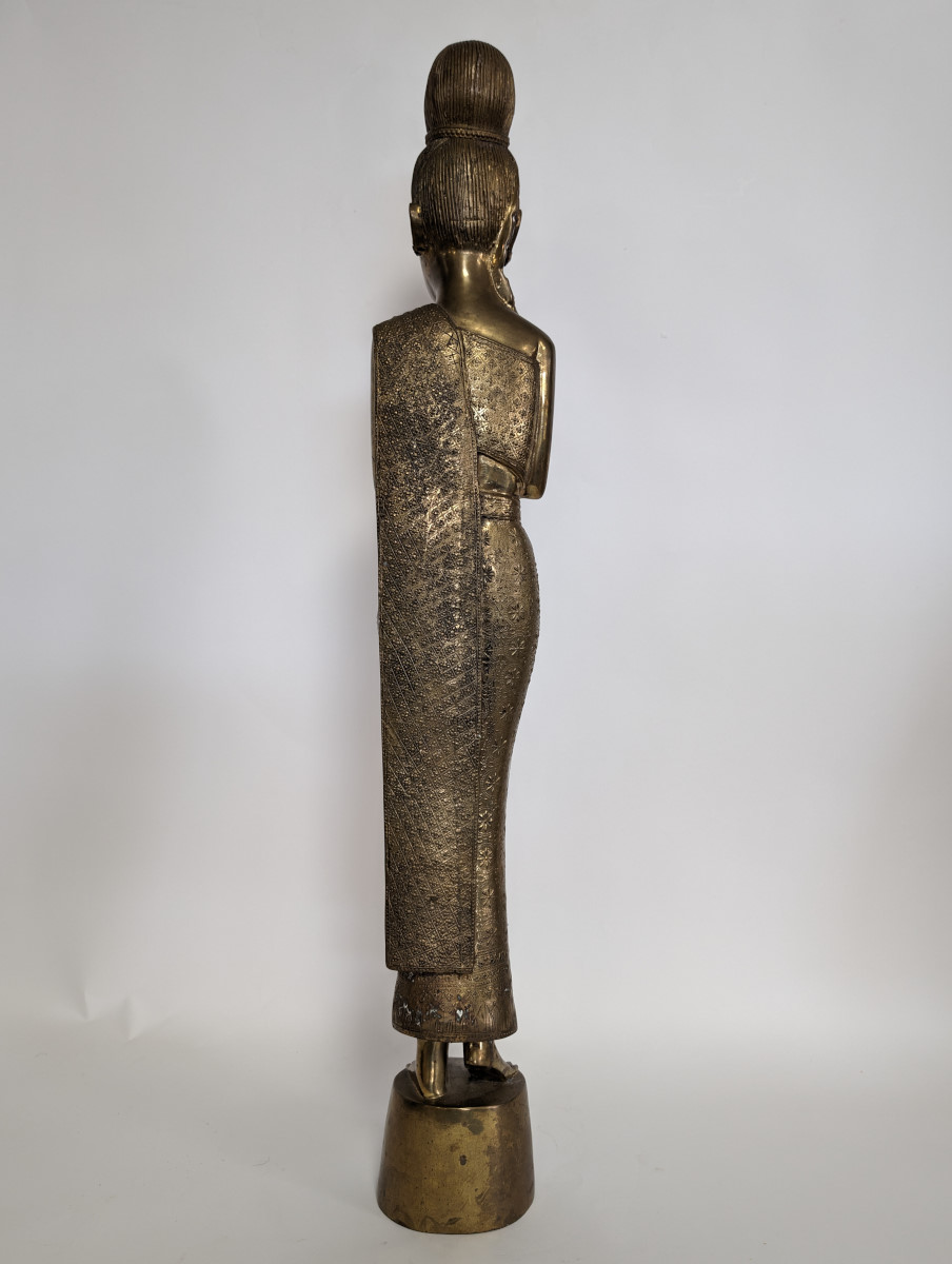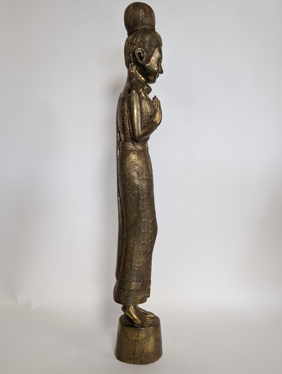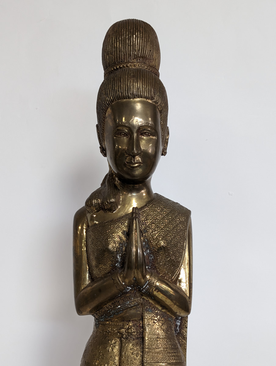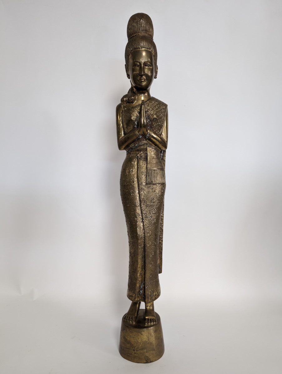 | FEATURES: | Lovely Vintage Brass Sawasdee Women Statues, 35"H |