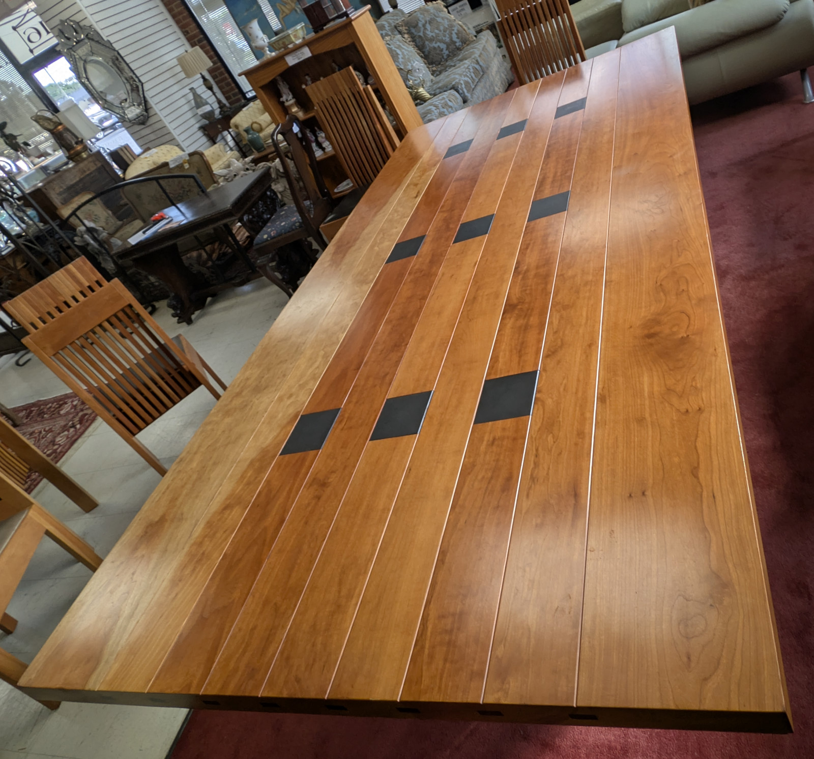 | FEATURES: | Monumental Studio Crafted 8 FT Dining Table W/ 8 Chairs, Cherry Wood & Tile |