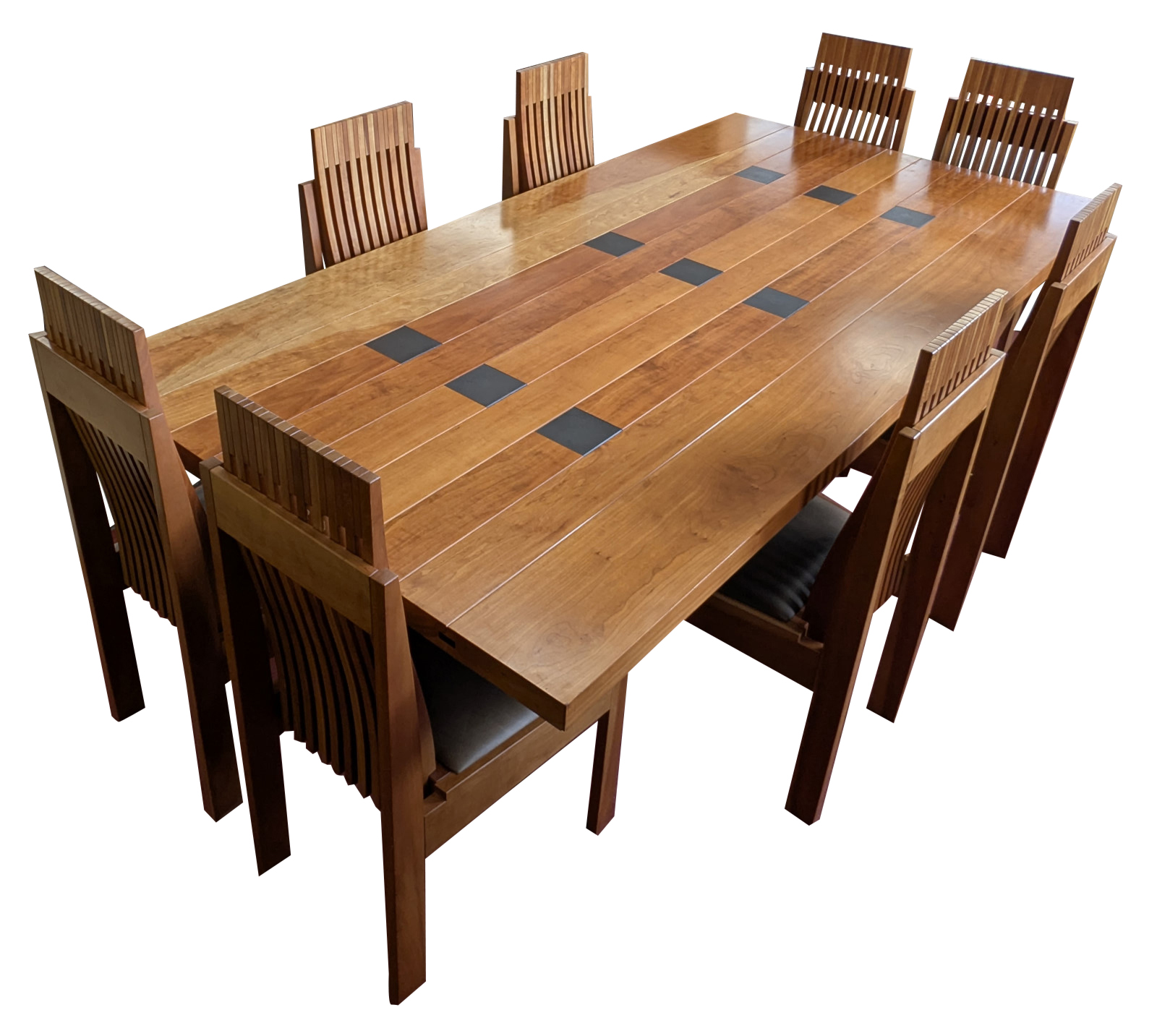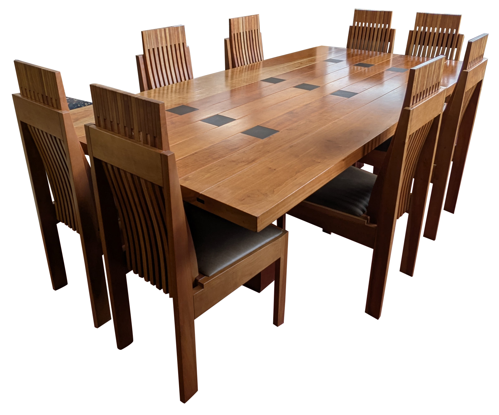 Monumental Studio Crafted Dining Table & 8 Chairs, Cherry Wood & Tile