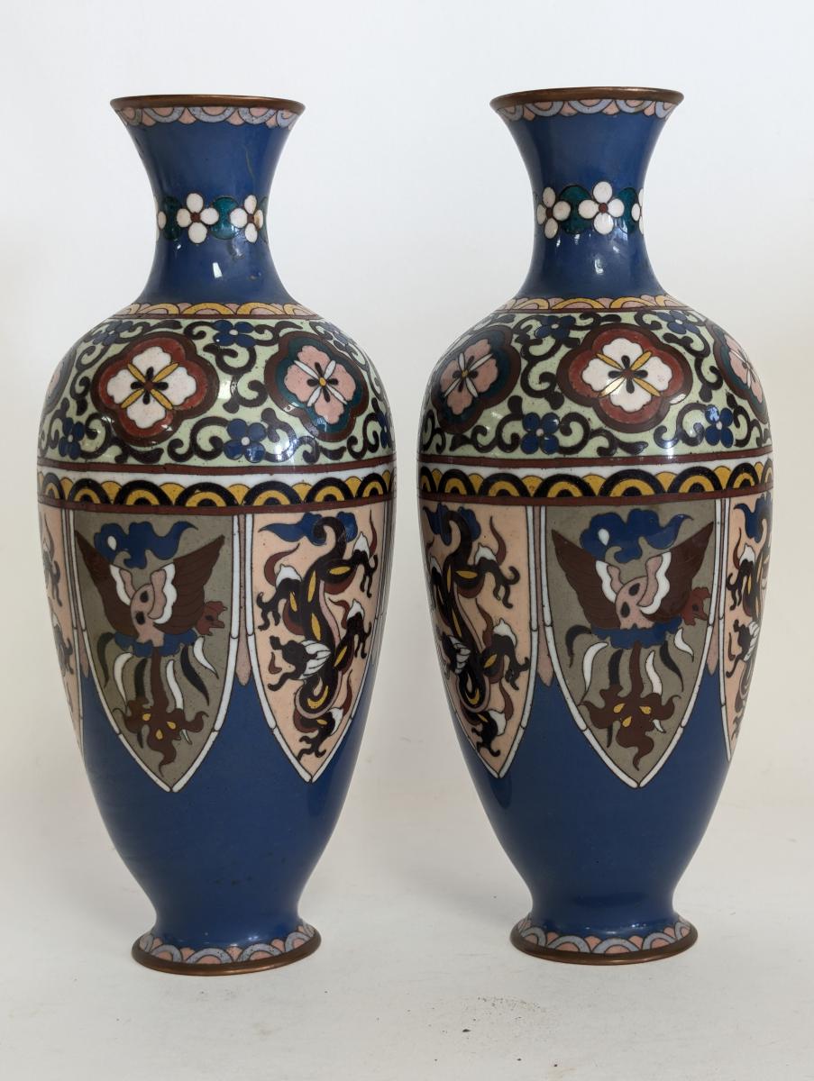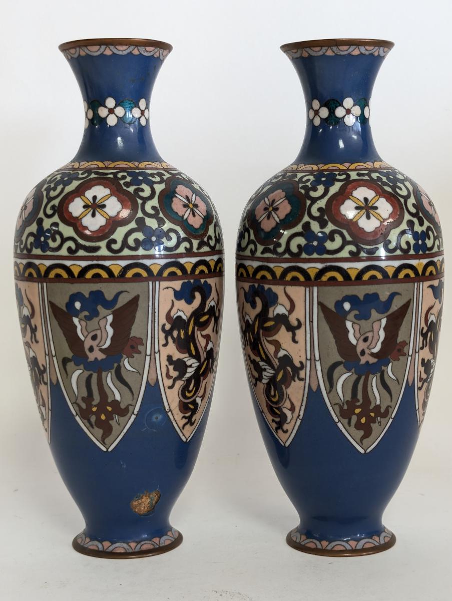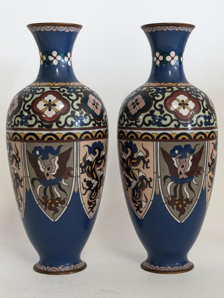 | FEATURES: | Pair of Antique Japanese Cloisonné Vases, 10"H |