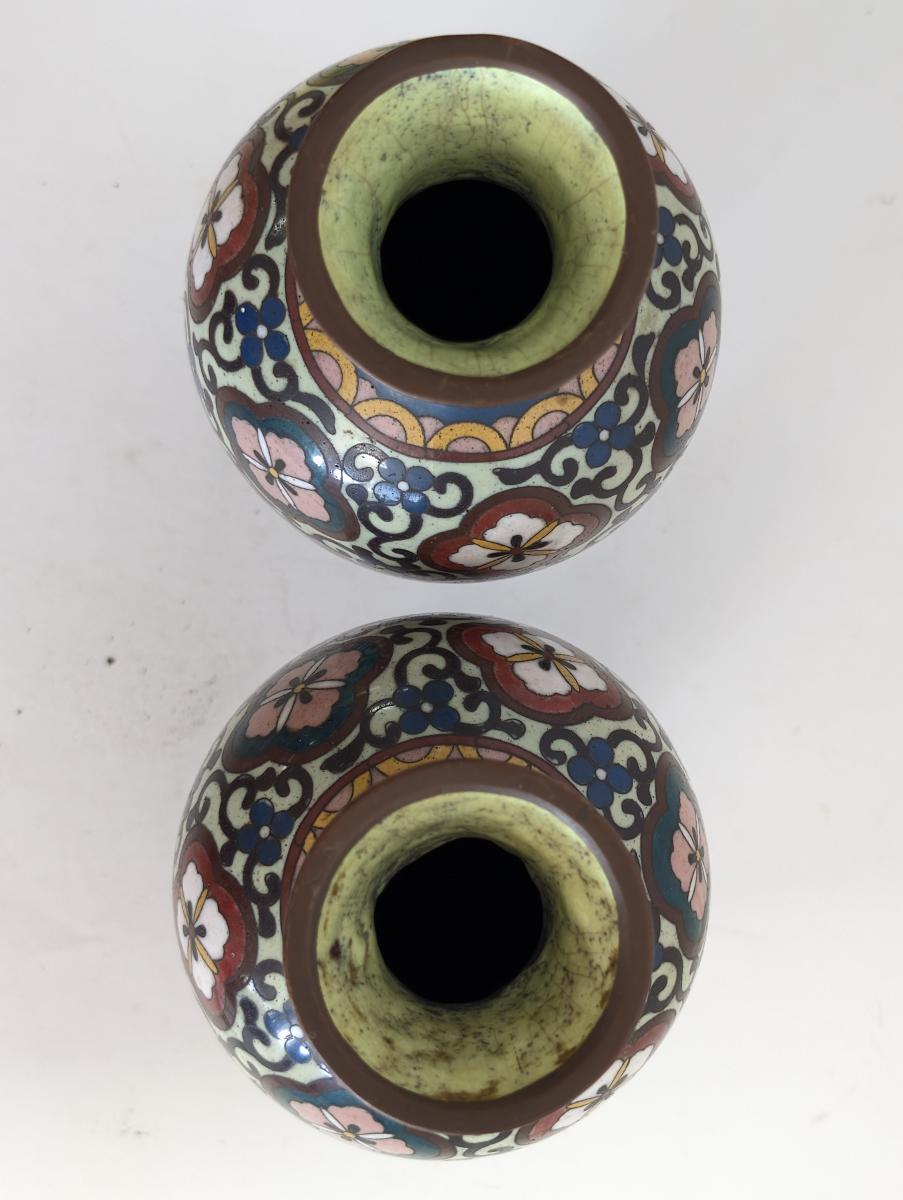 Pair of Antique Japanese Cloisonné Vases, 10″H, PA6892MT