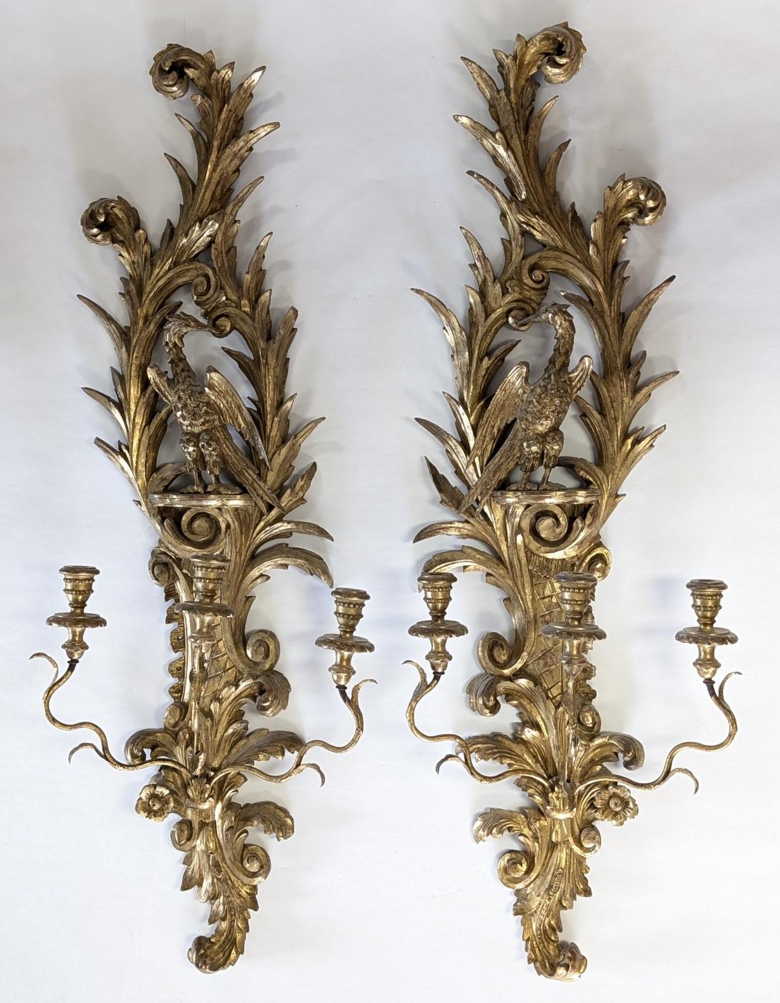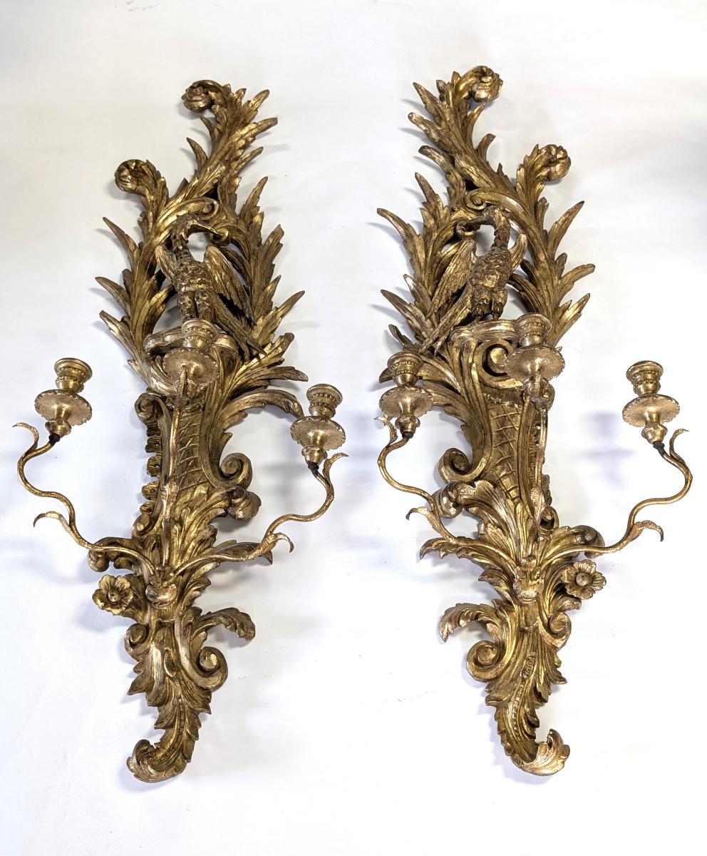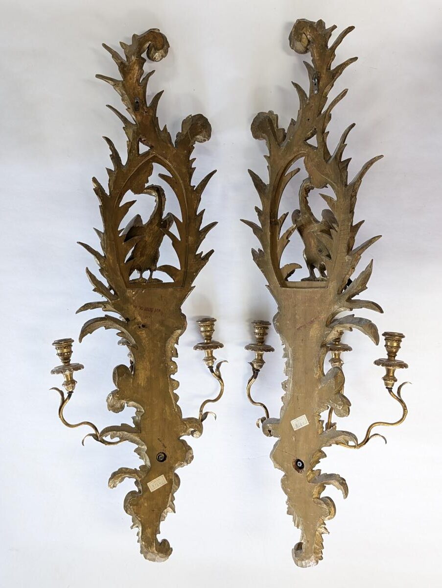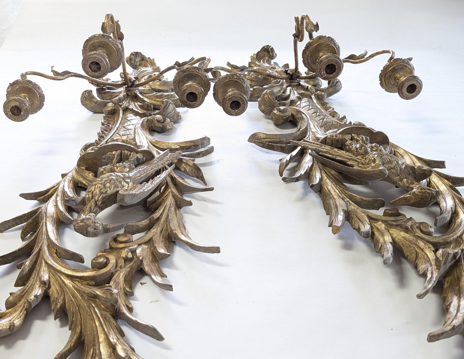 | FEATURES: | Pair of Vintage Italian Gold Gilt Hand Carved Sconces, 46"H |