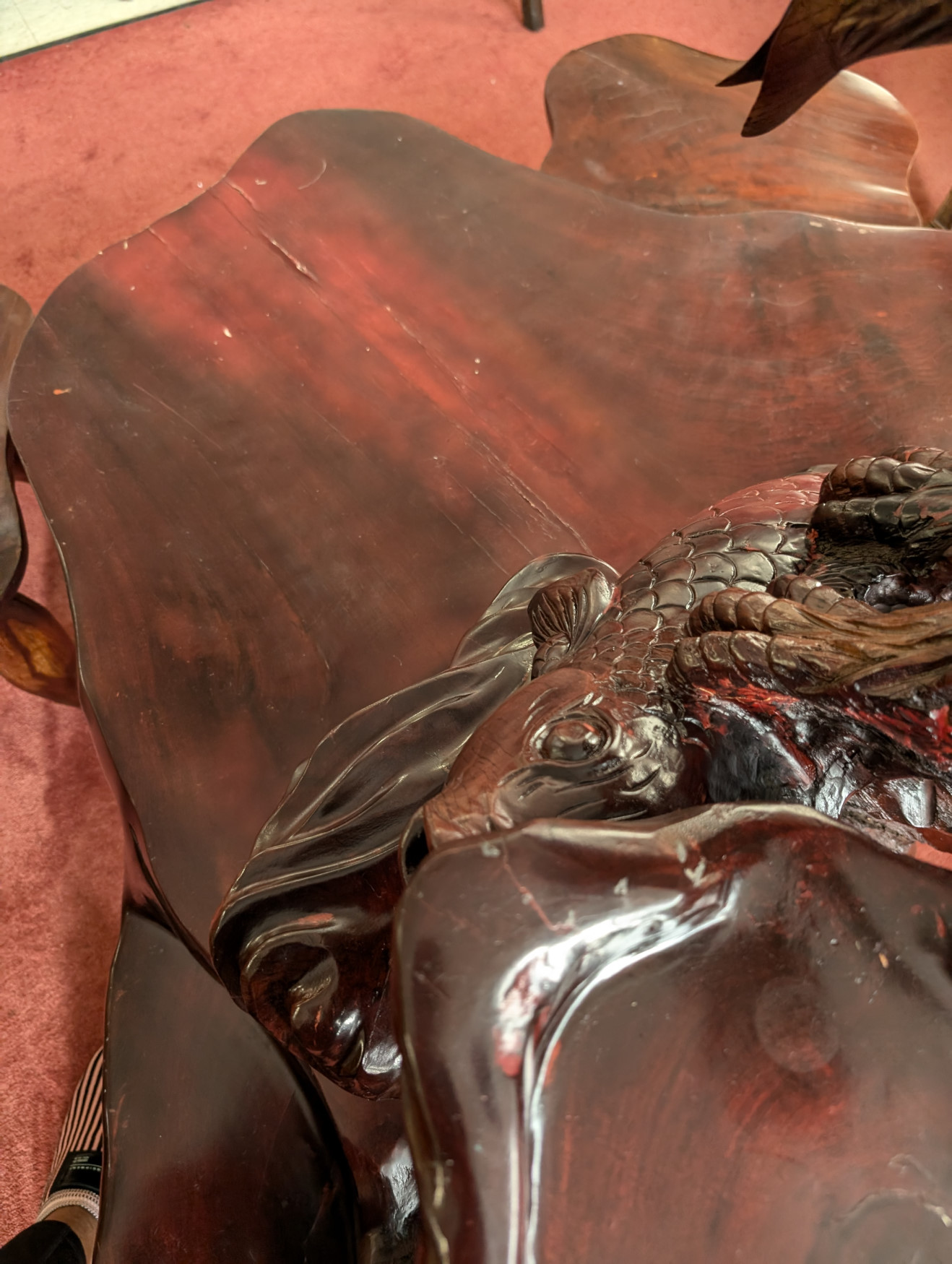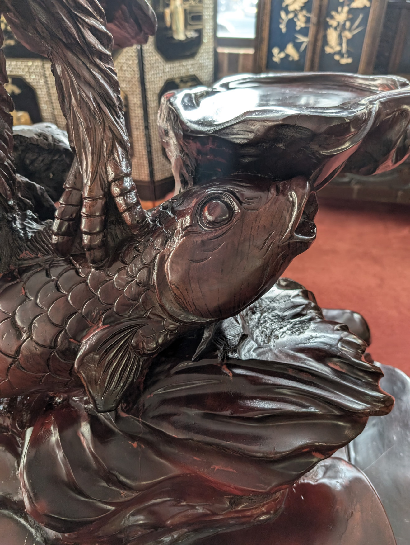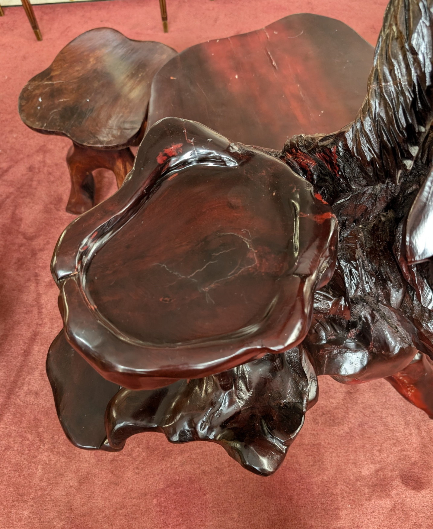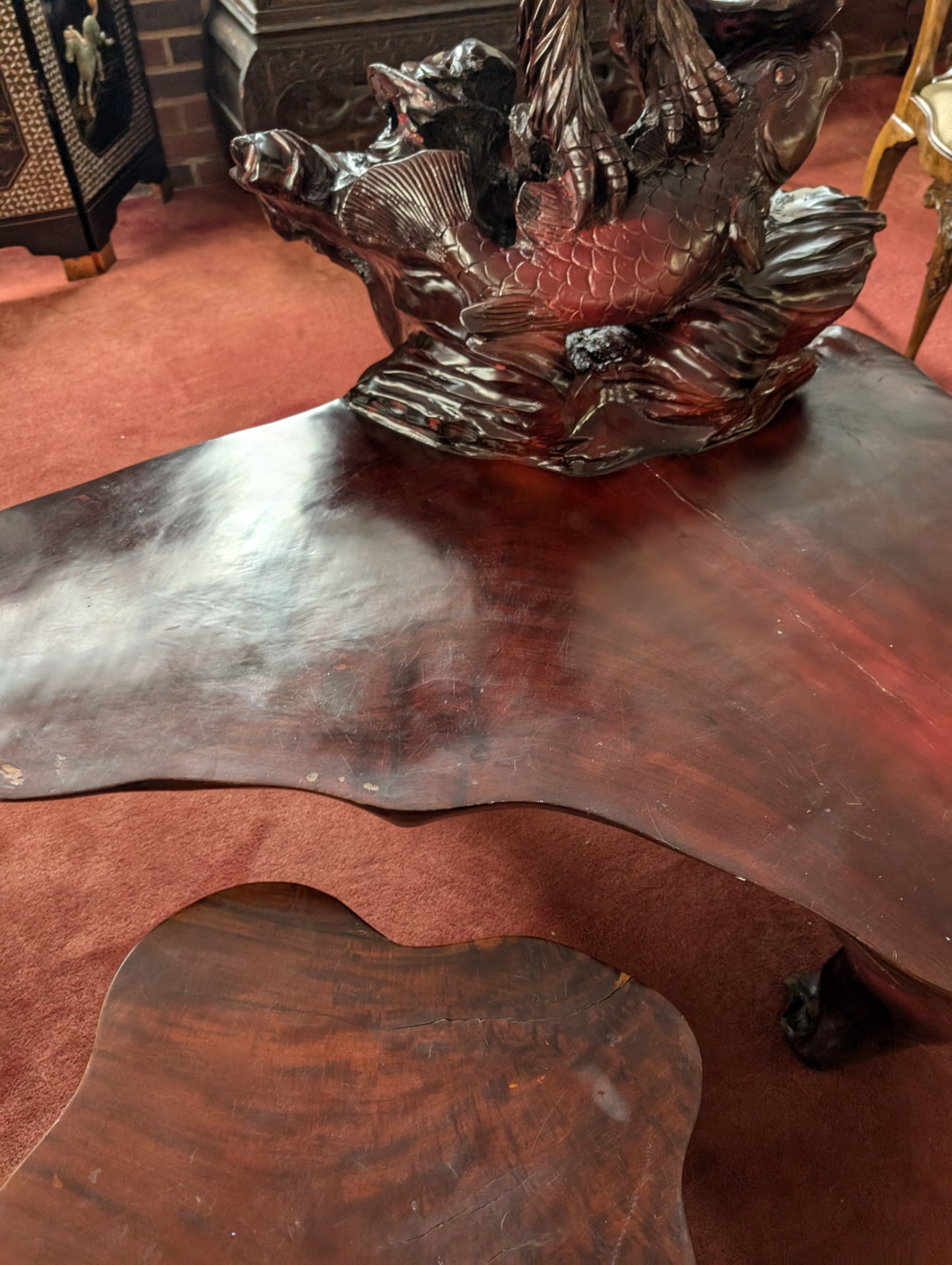 RARE Vintage Rosewood 3 Piece Tea Table Set, Eagle, Koi Fish