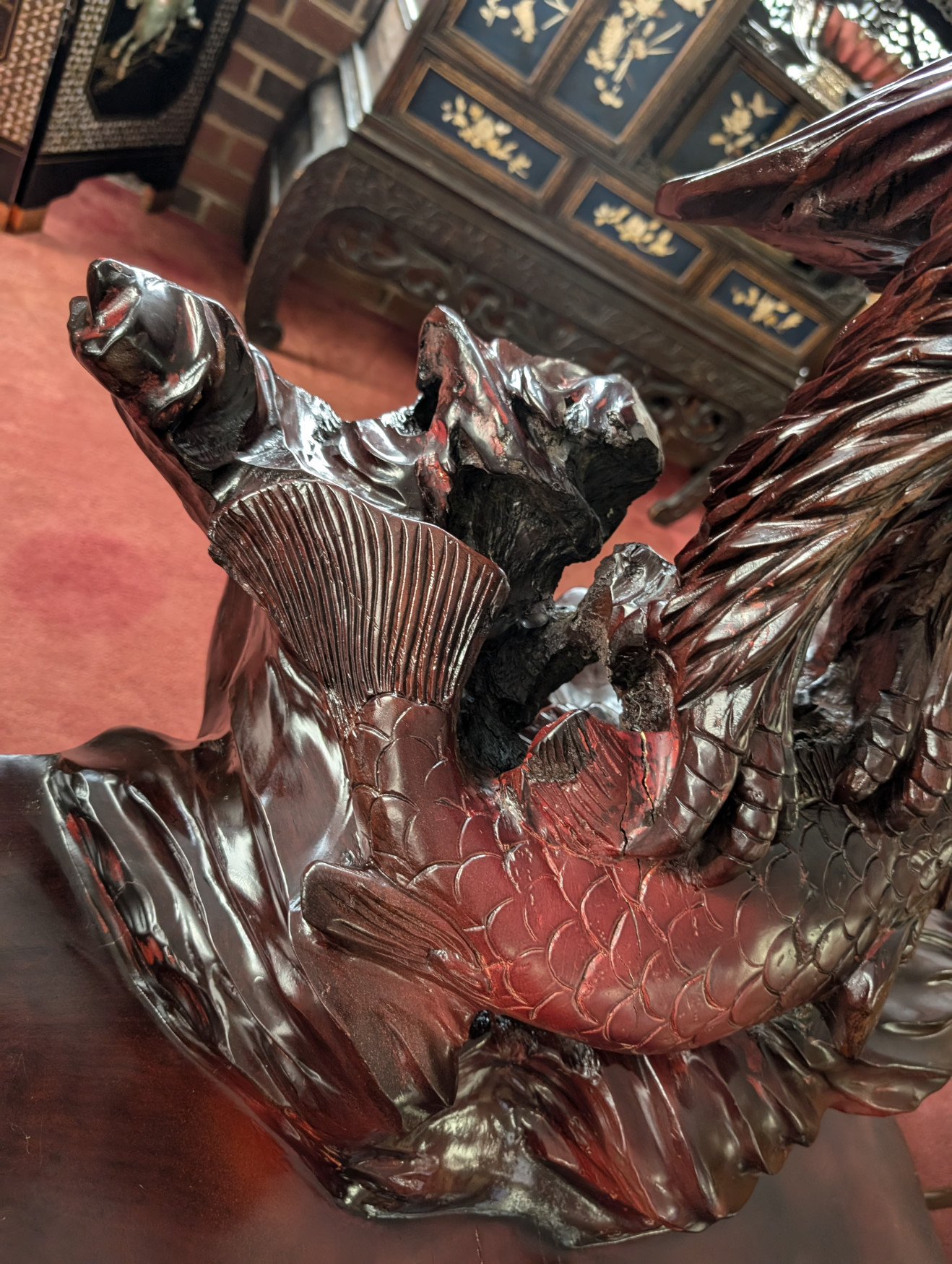 RARE Vintage Rosewood 3 Piece Tea Table Set, Eagle, Koi Fish, 58.5″H, PA6585ZD