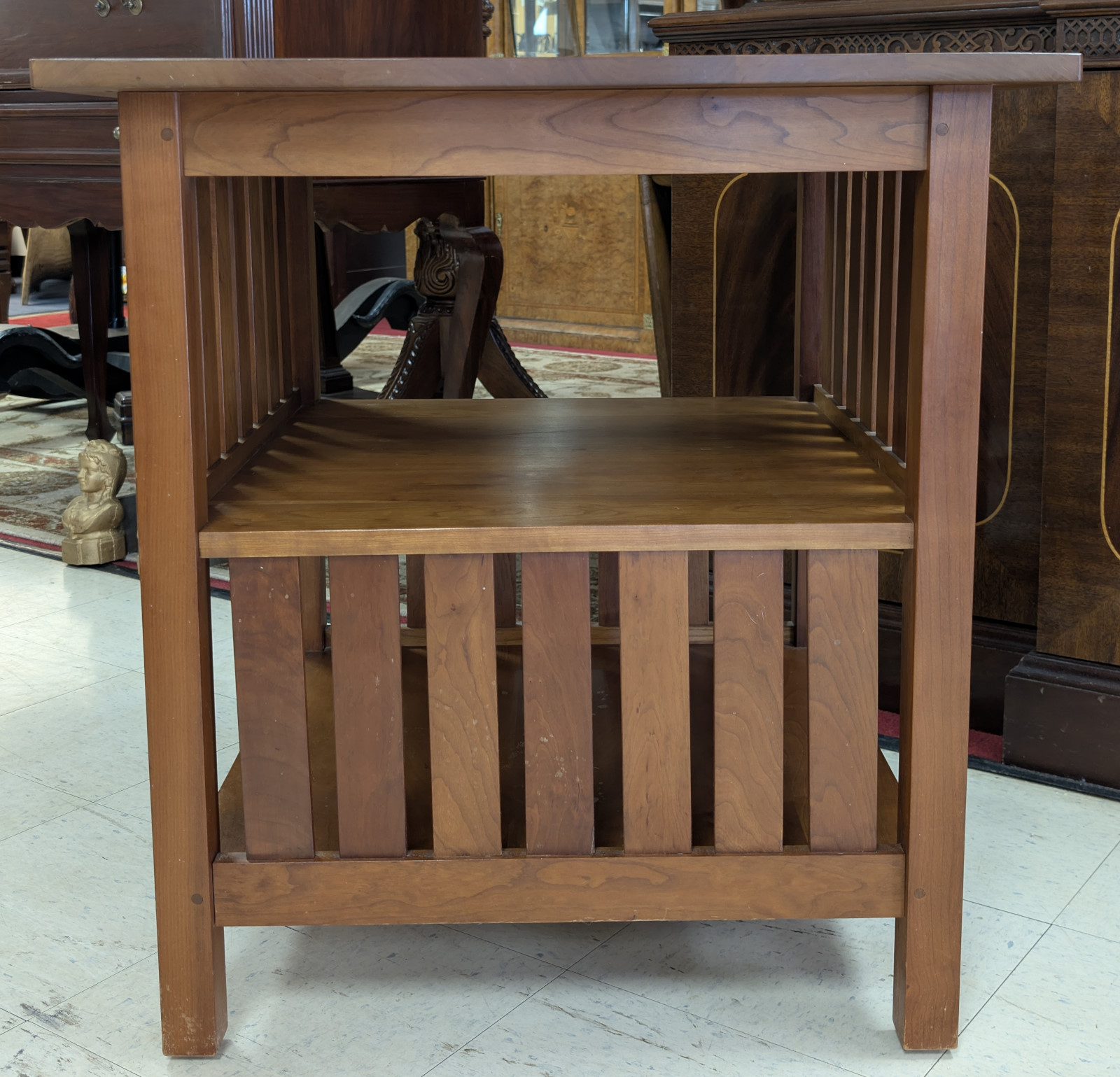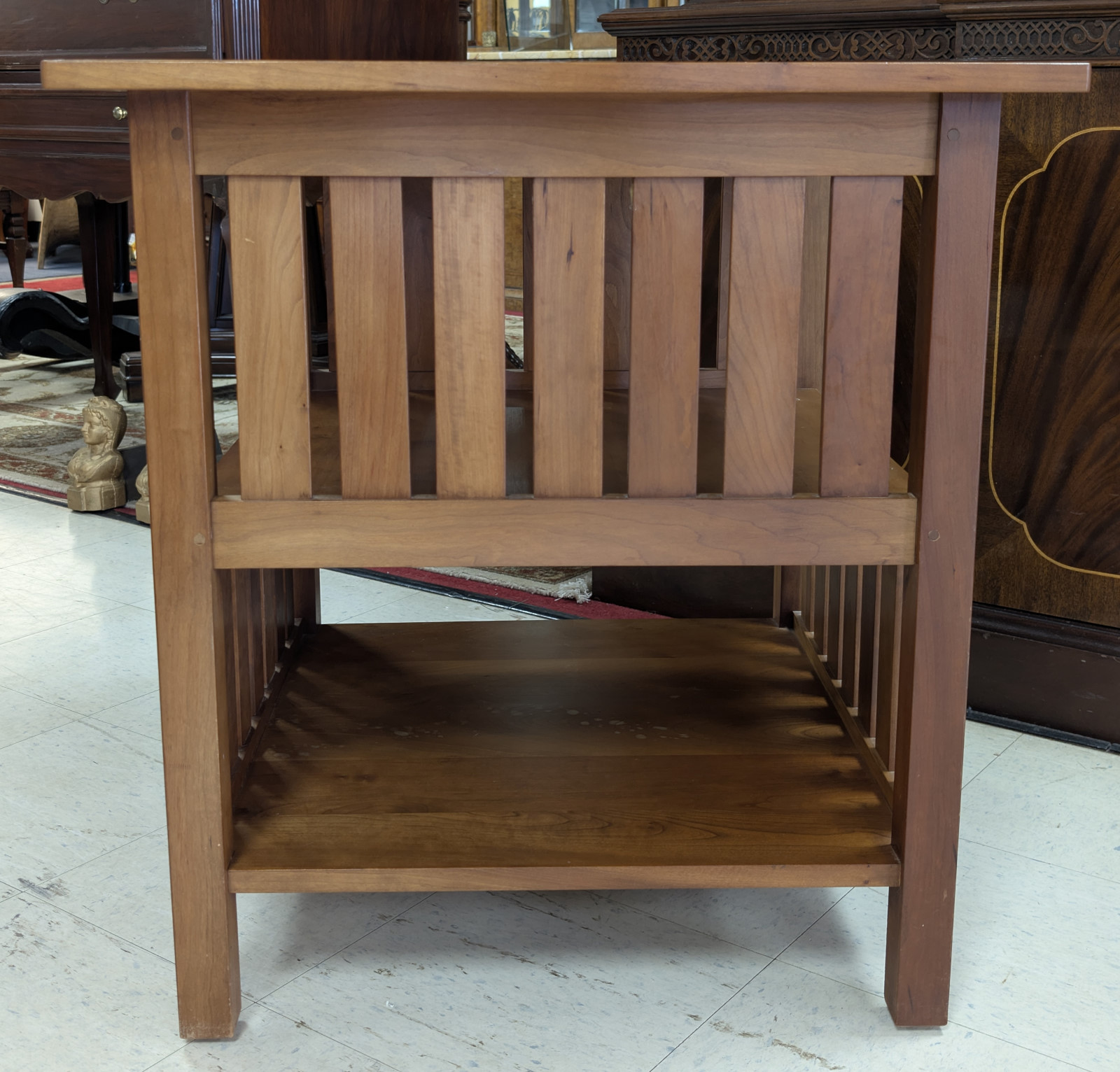 | FEATURES: | Stickley Mission Book Table, Cherry Wood, 29"H |