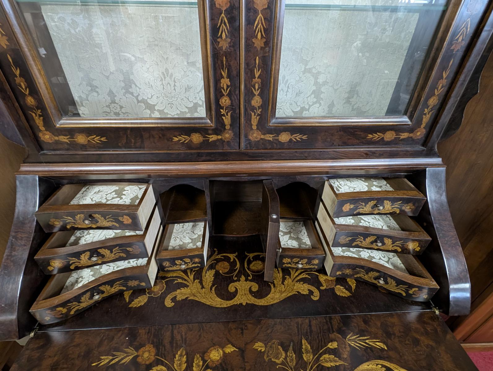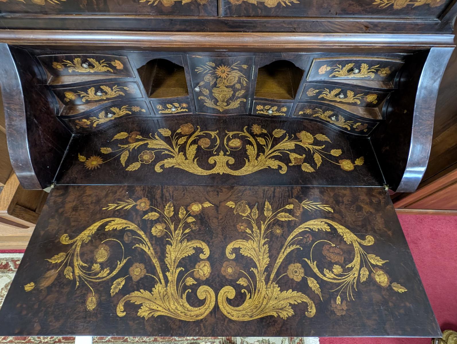 Vintage Italian Marquetry Walnut Bookcase Secretary
