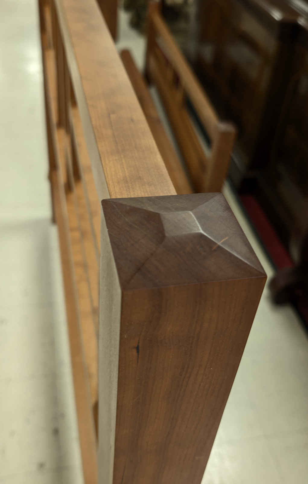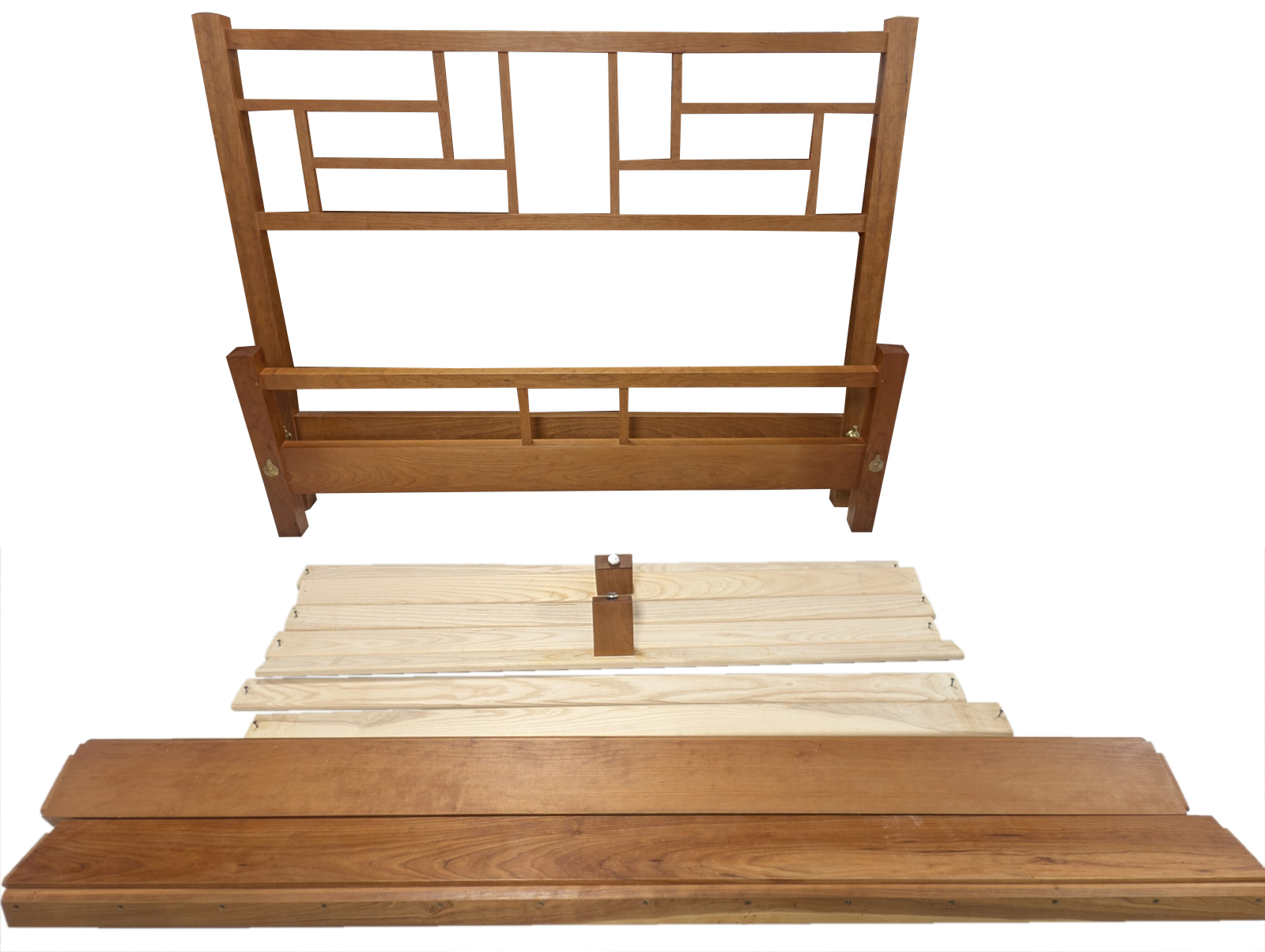 The headboard features an elegant geometric lattice inspired by traditional Chinese window patterns, a hallmark of Moser’s “New Century China” line. Clean, rectilinear posts with chamfered caps frame the composition, while the footboard maintains a lower, understated profile for balance and visual openness. Thoughtful joinery and precision construction are evident throughout, consistent with Moser’s heirloom-quality standards.