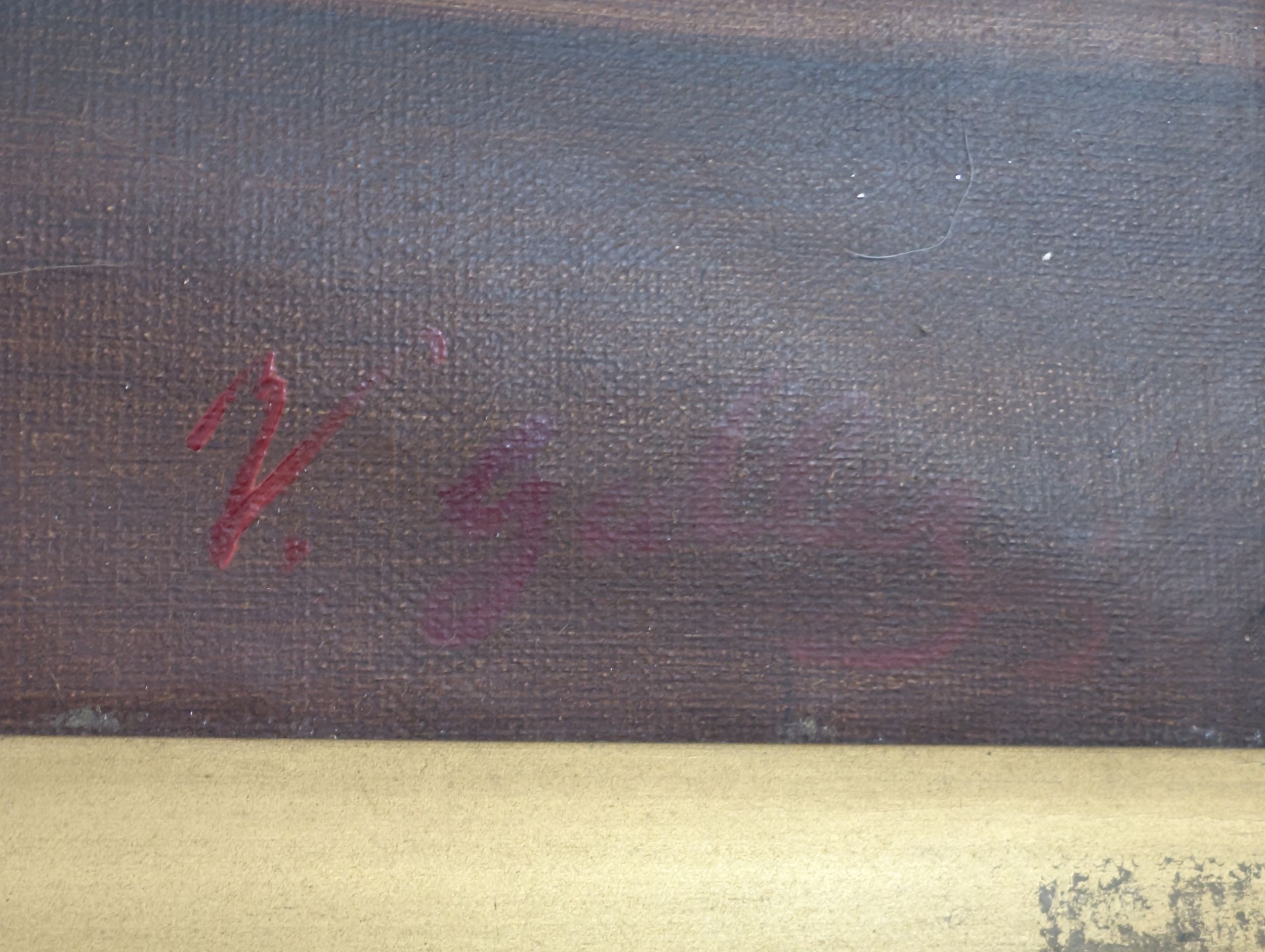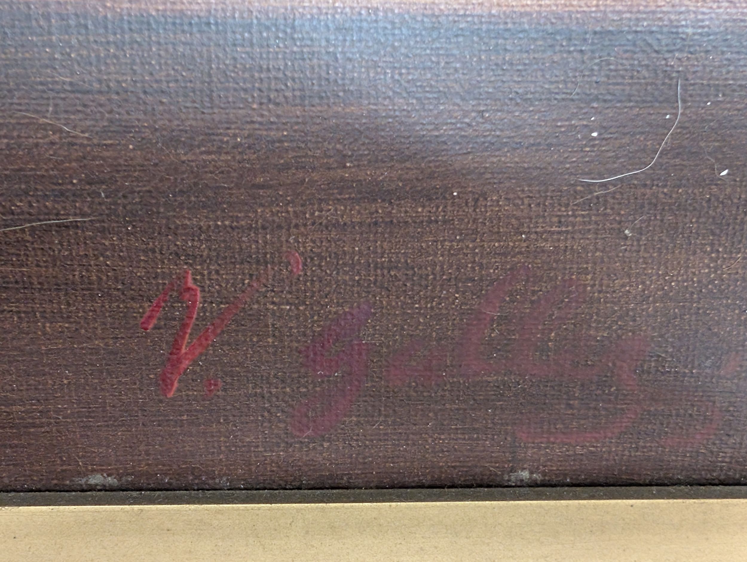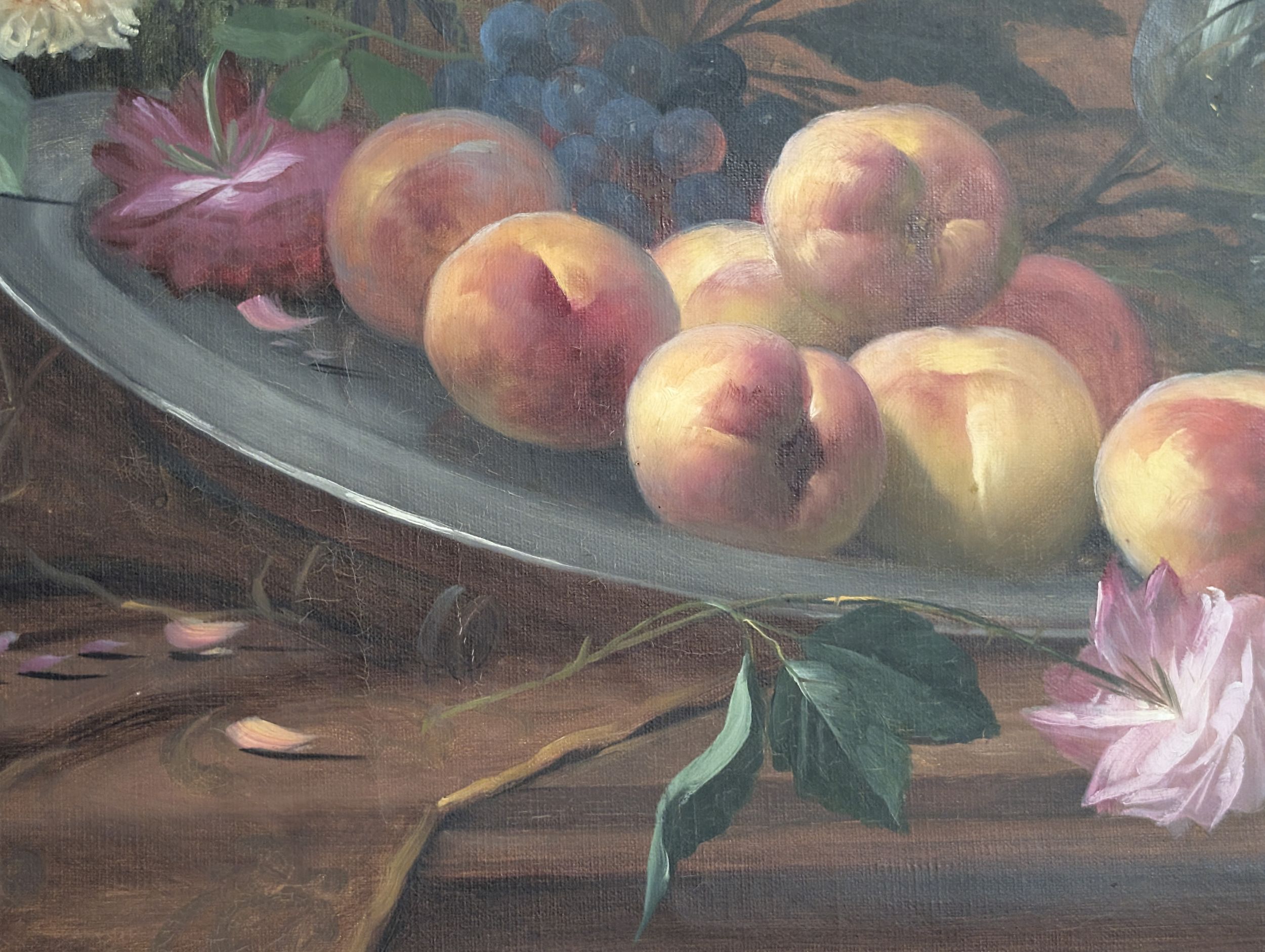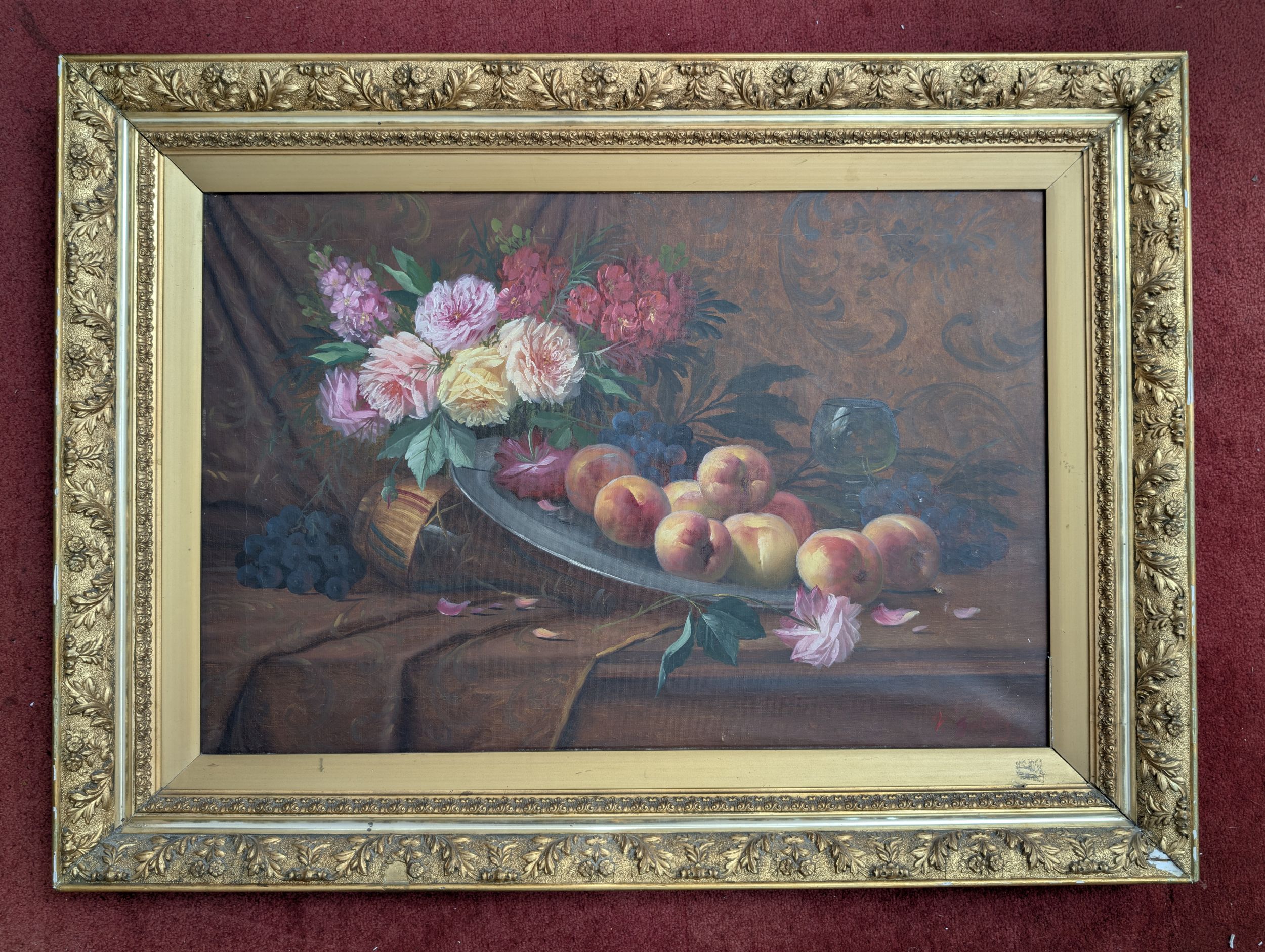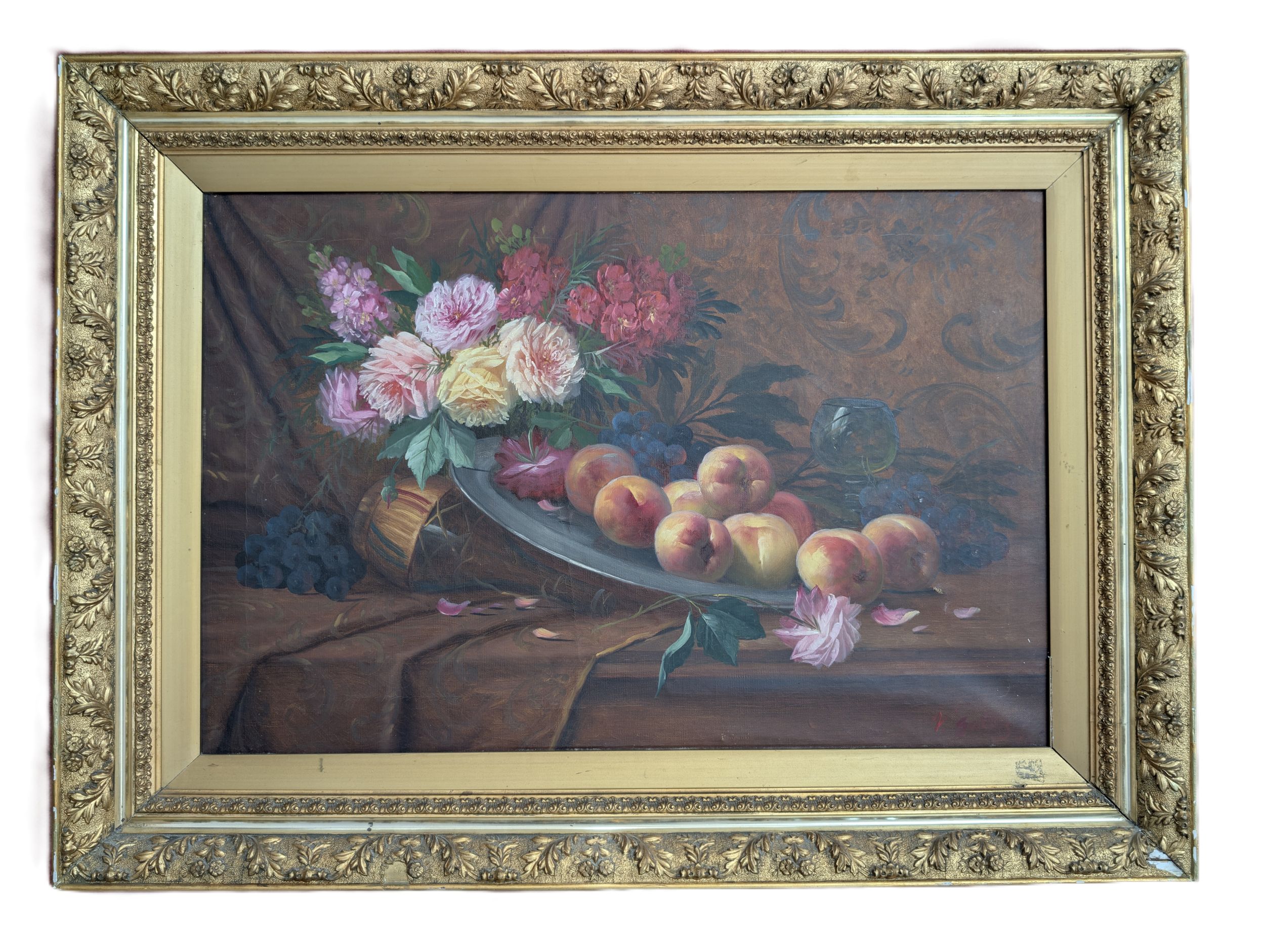 | FEATURES: | Victor Gallez, Still Life, Fruit and Flowers, Signed, Oil On Canvas, 20×29.75 |