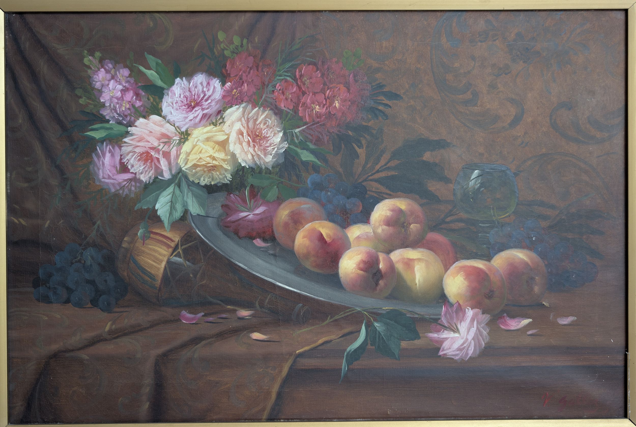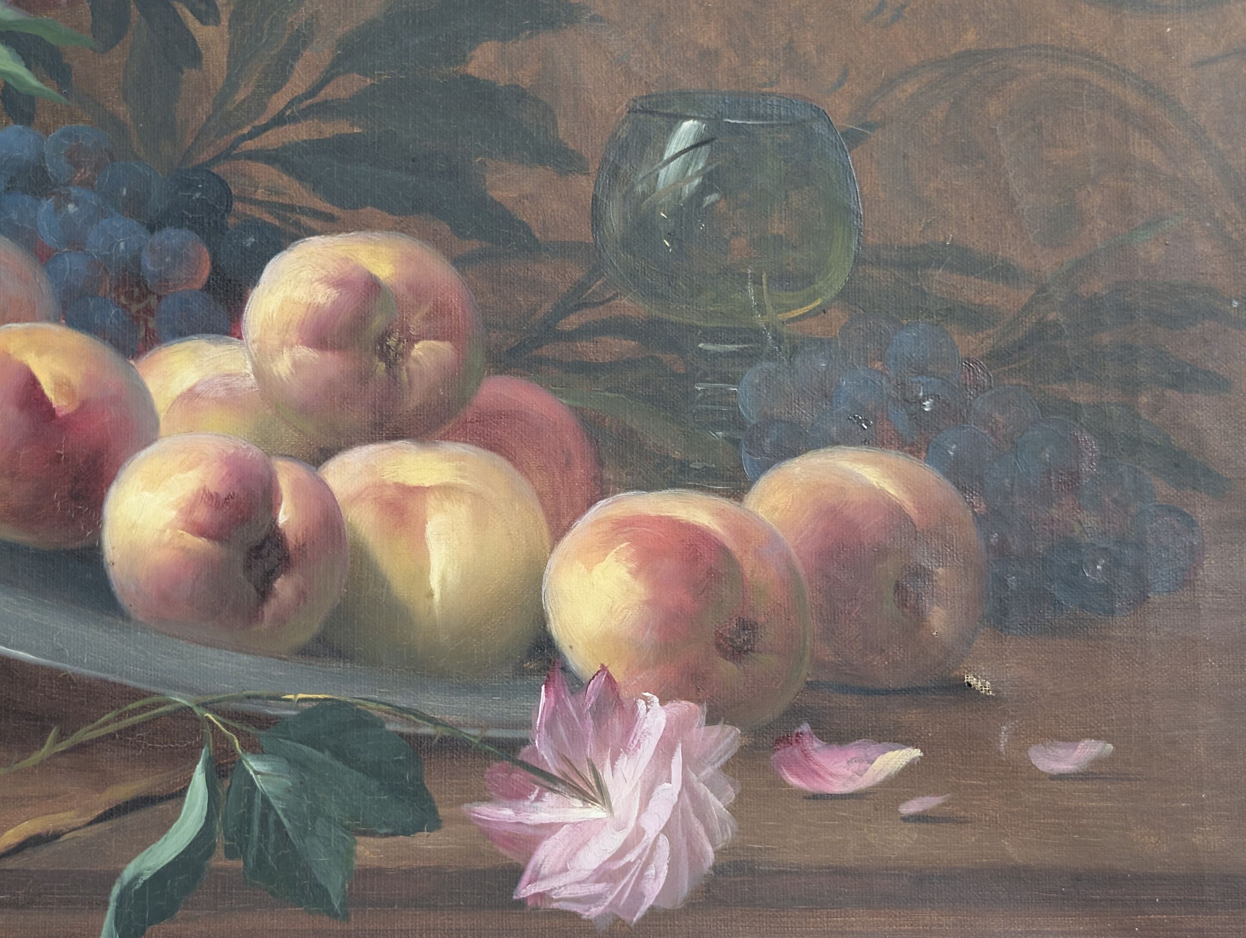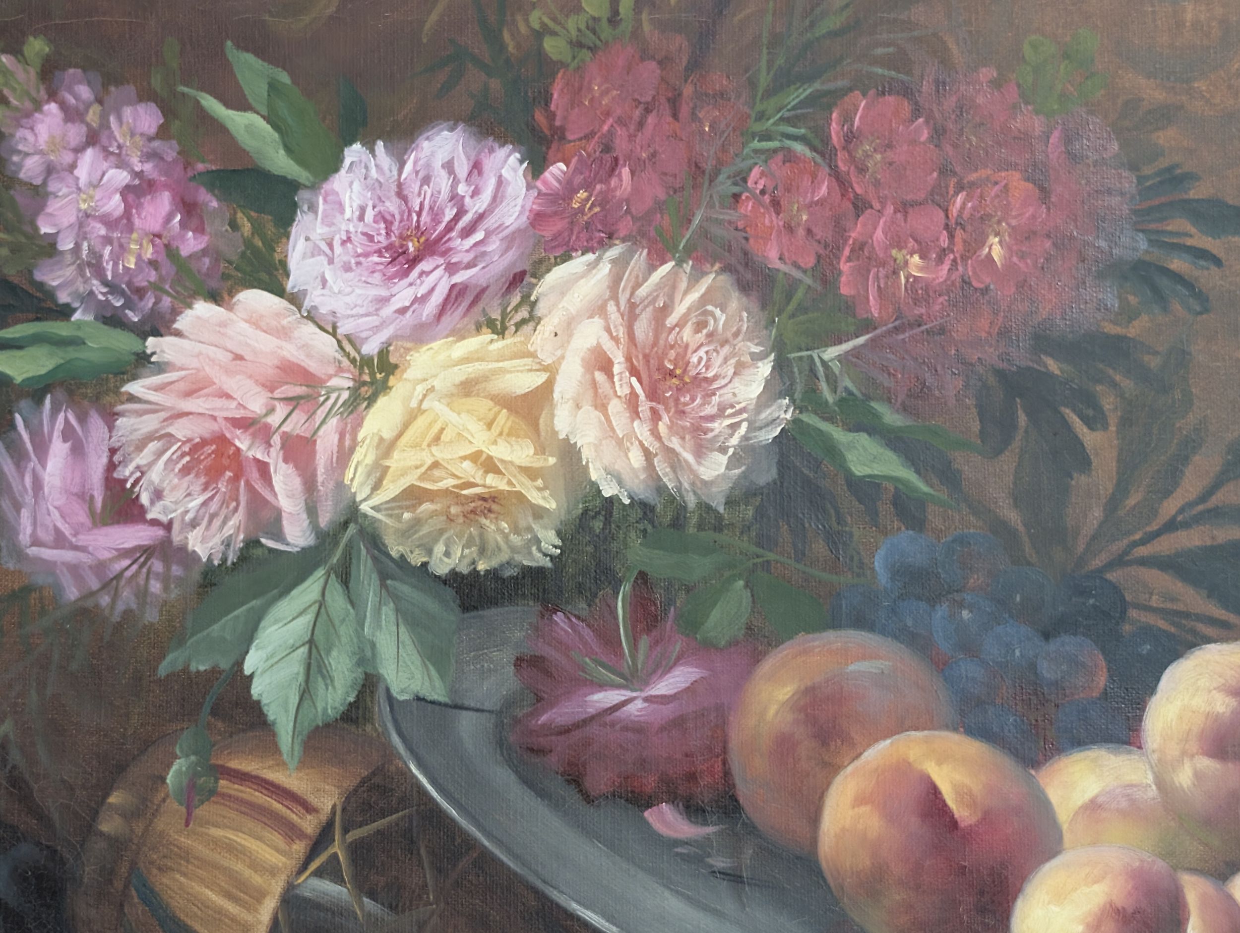 Victor Gallez, Still Life, Fruit and Flowers, Signed, Oil On Canvas