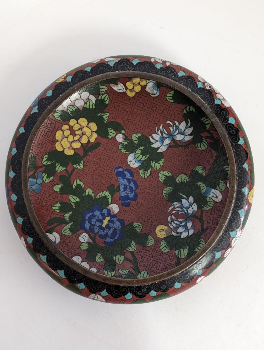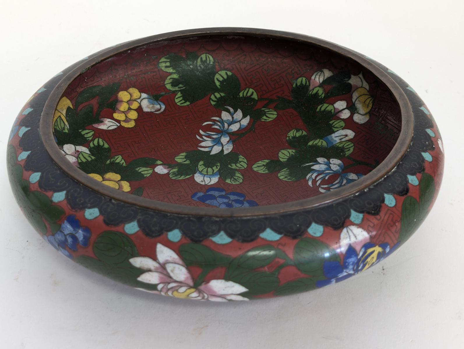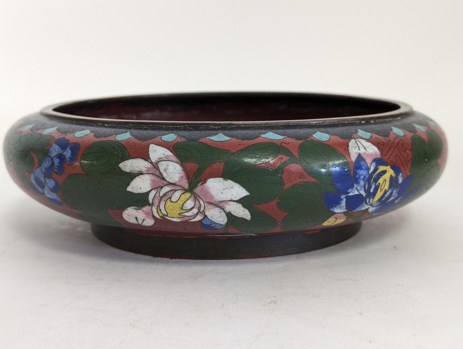 Vintage Chinese Cloisonne Low Bowl, Lotus Flower