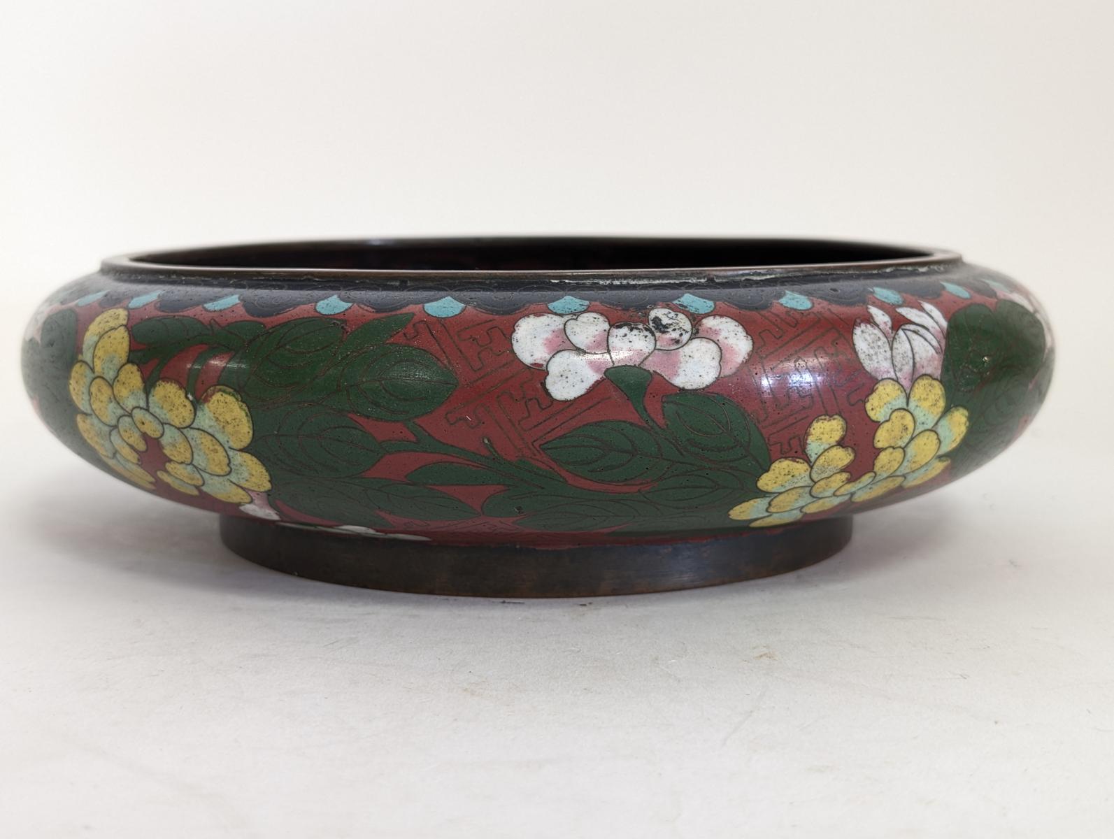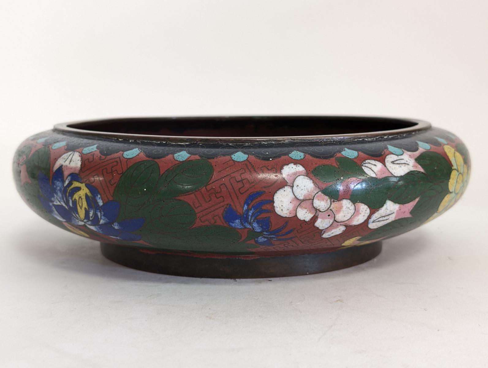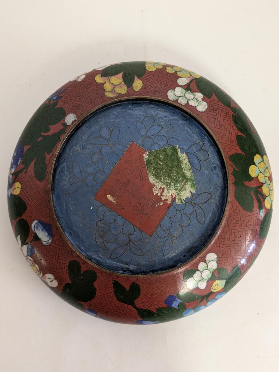 Vintage Chinese Cloisonne Low Bowl, Lotus Flower