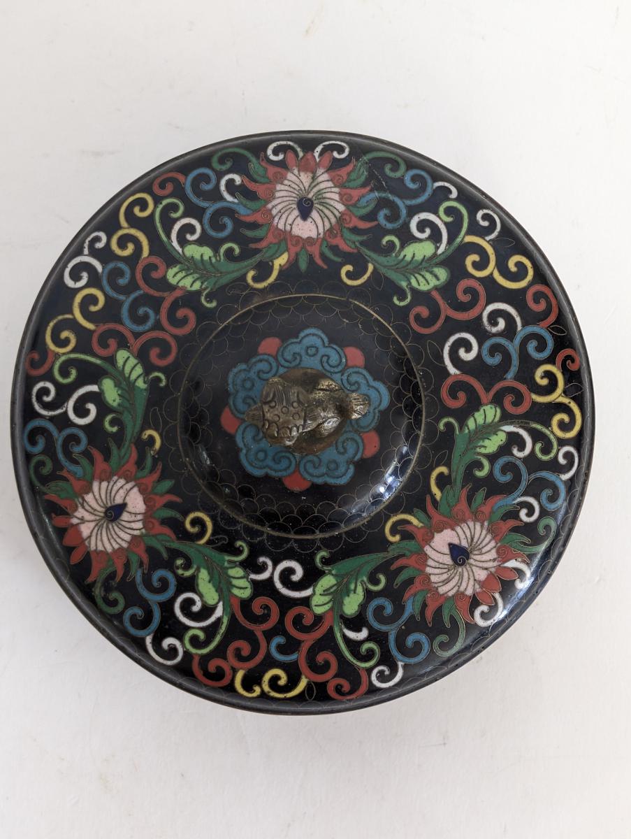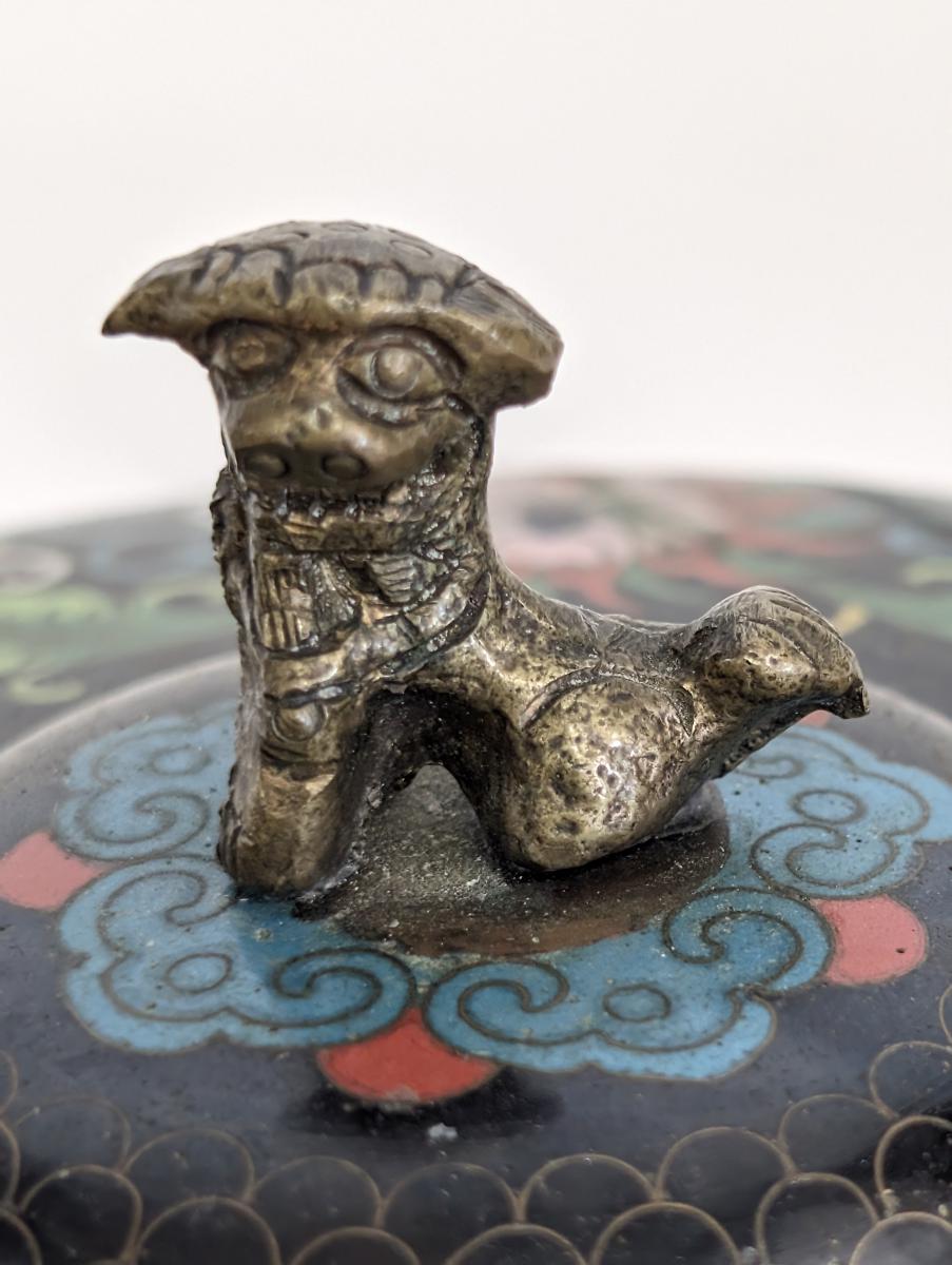 Vintage Cloisonne Lidded Box, Foo Dog