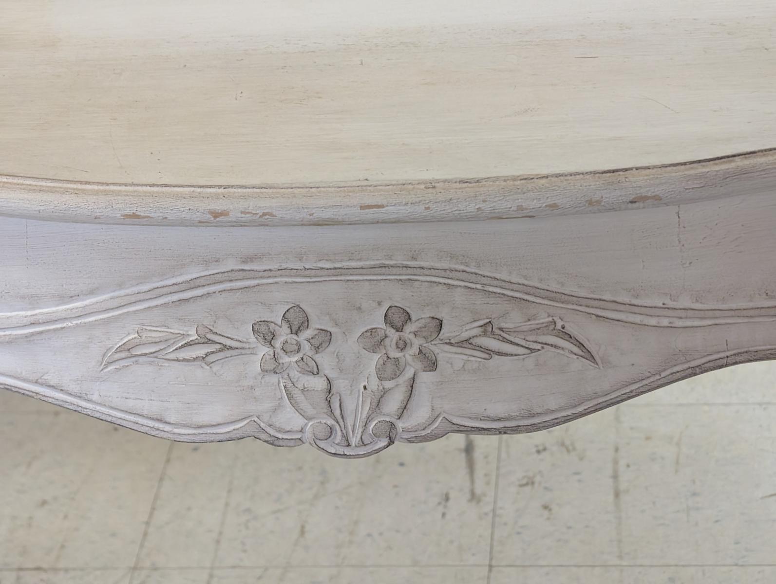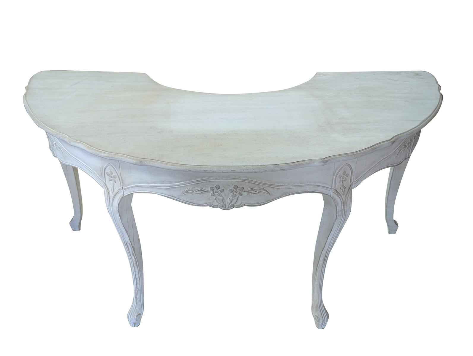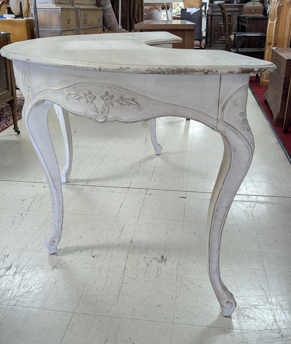 | FEATURES: | Vintage French Country Serpentine Half Circle Writing Desk, Painted, 61"W |