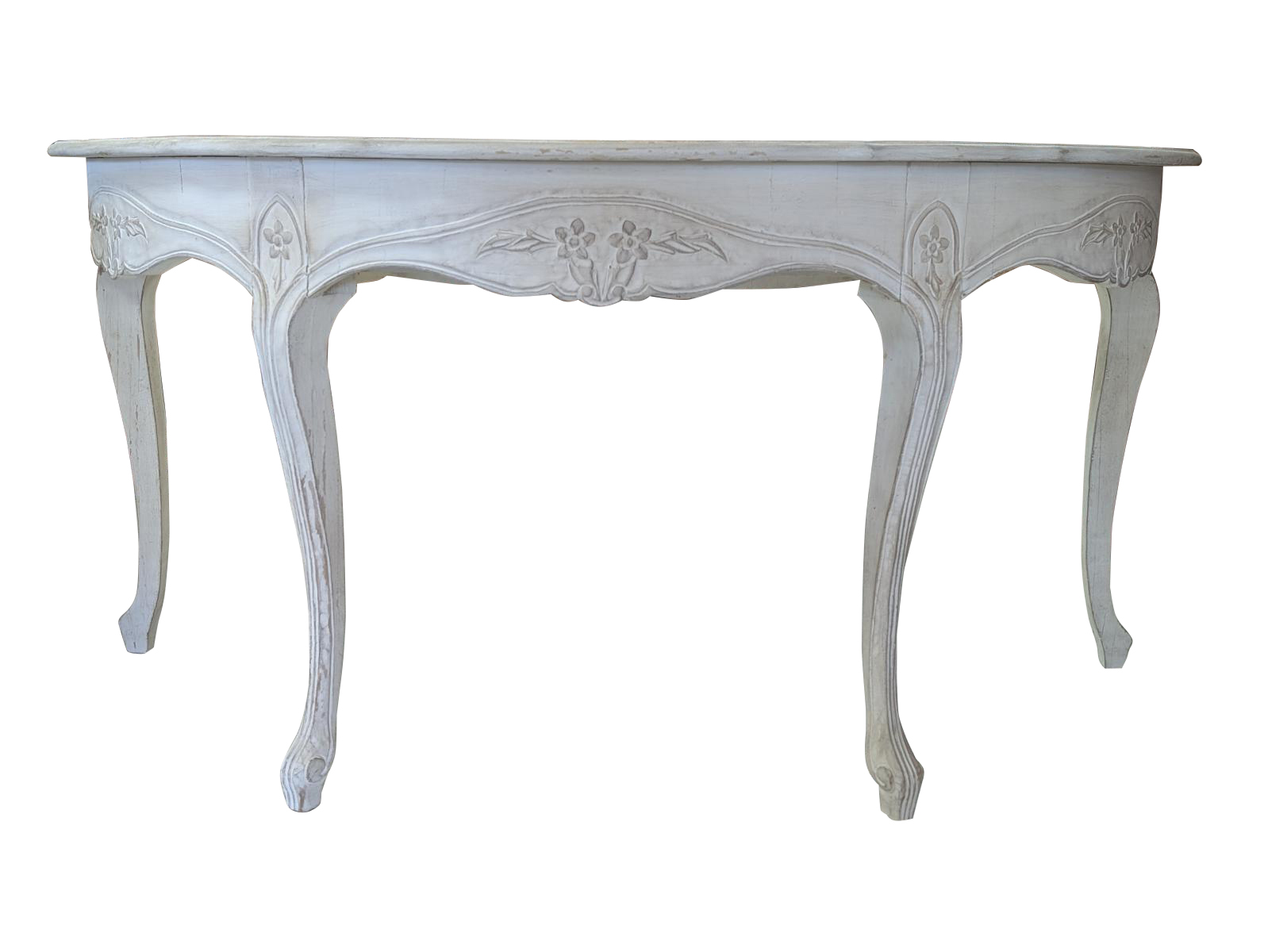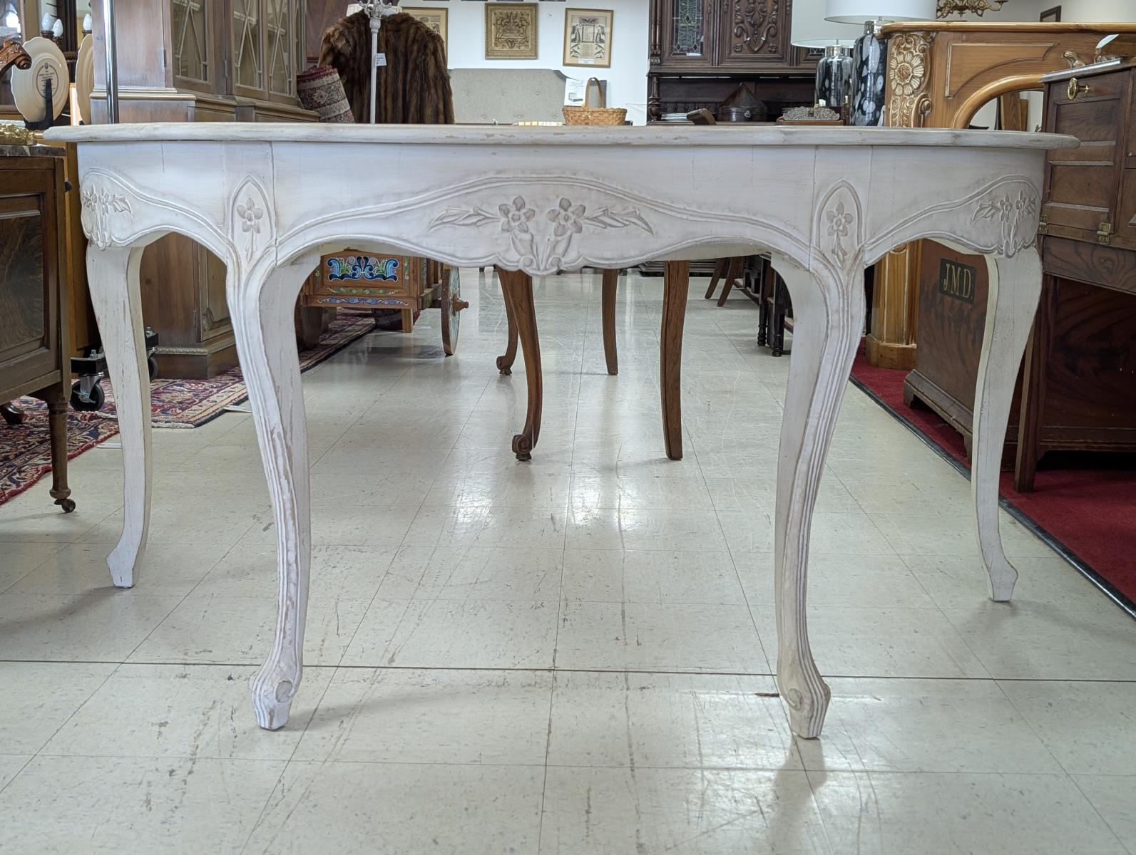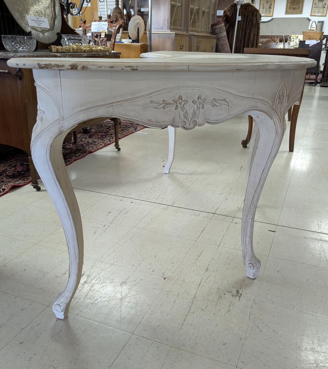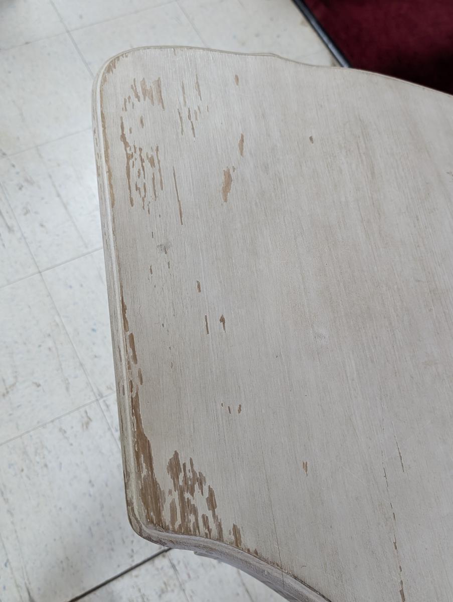 | FEATURES: | Vintage French Country Serpentine Half Circle Writing Desk, Painted, 61"W |