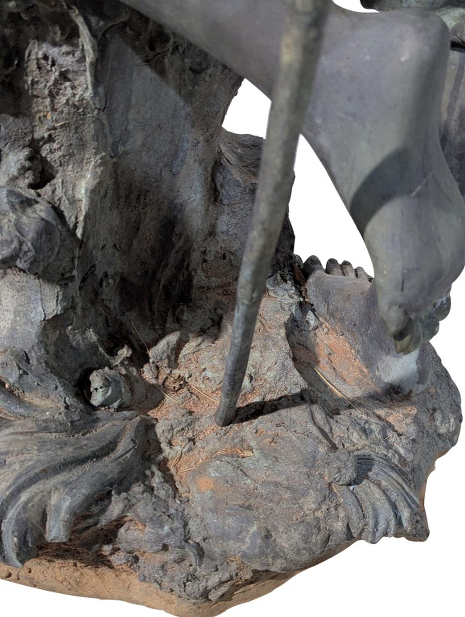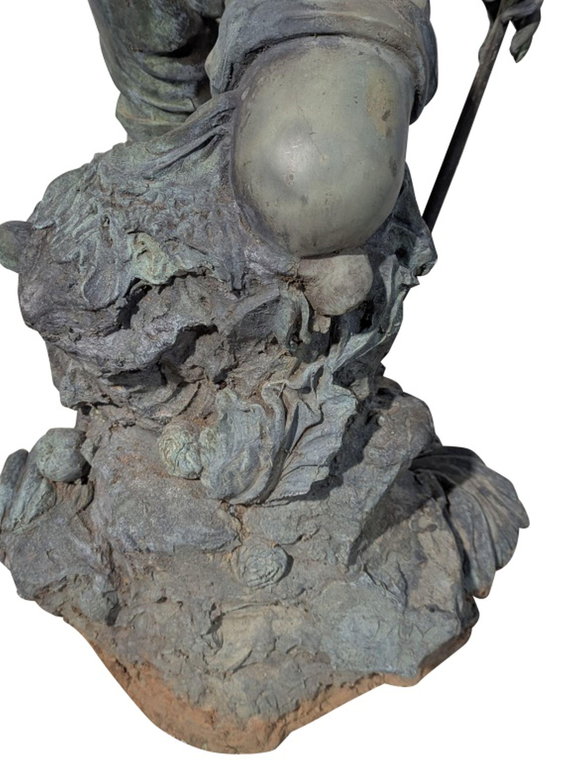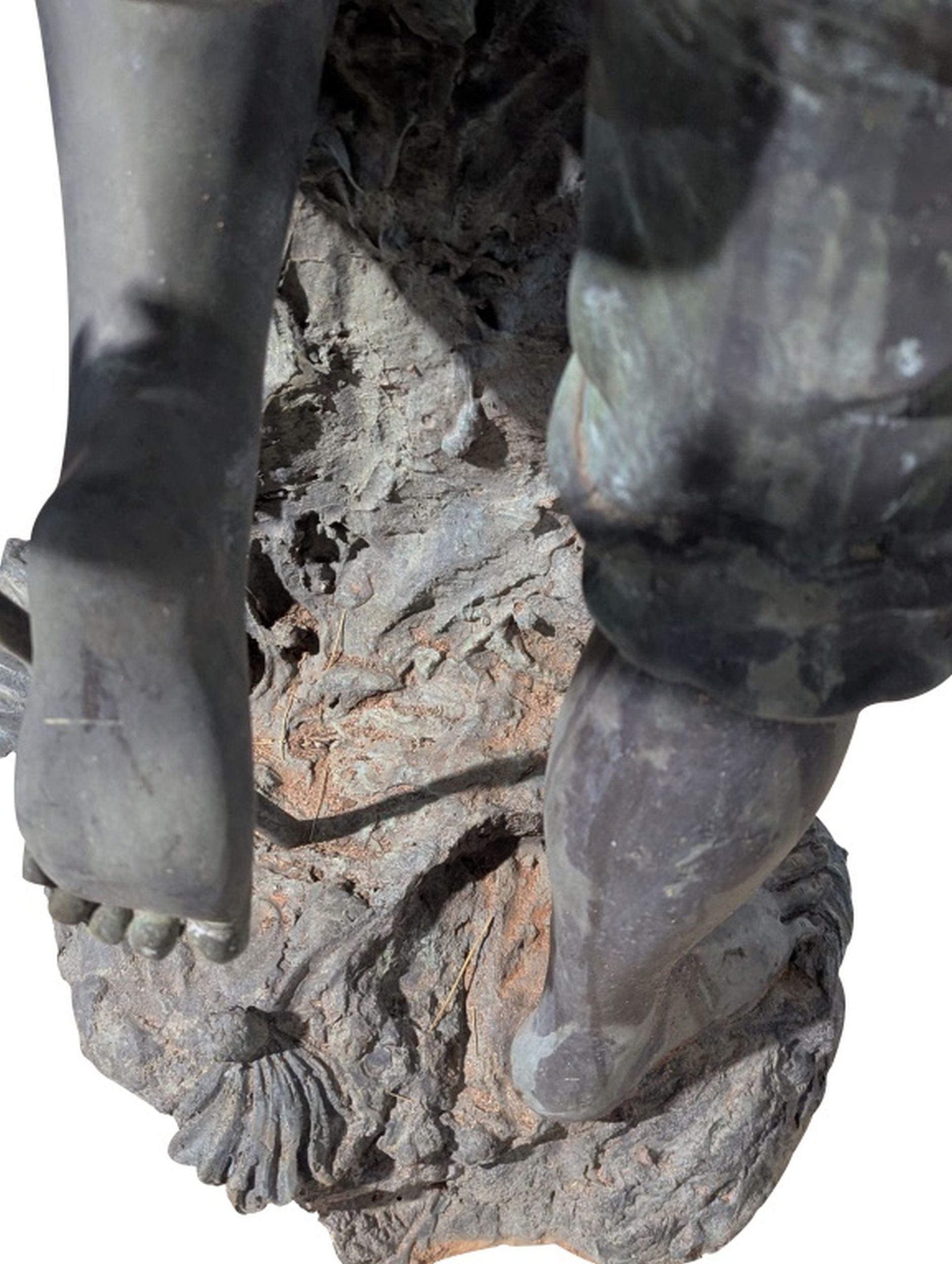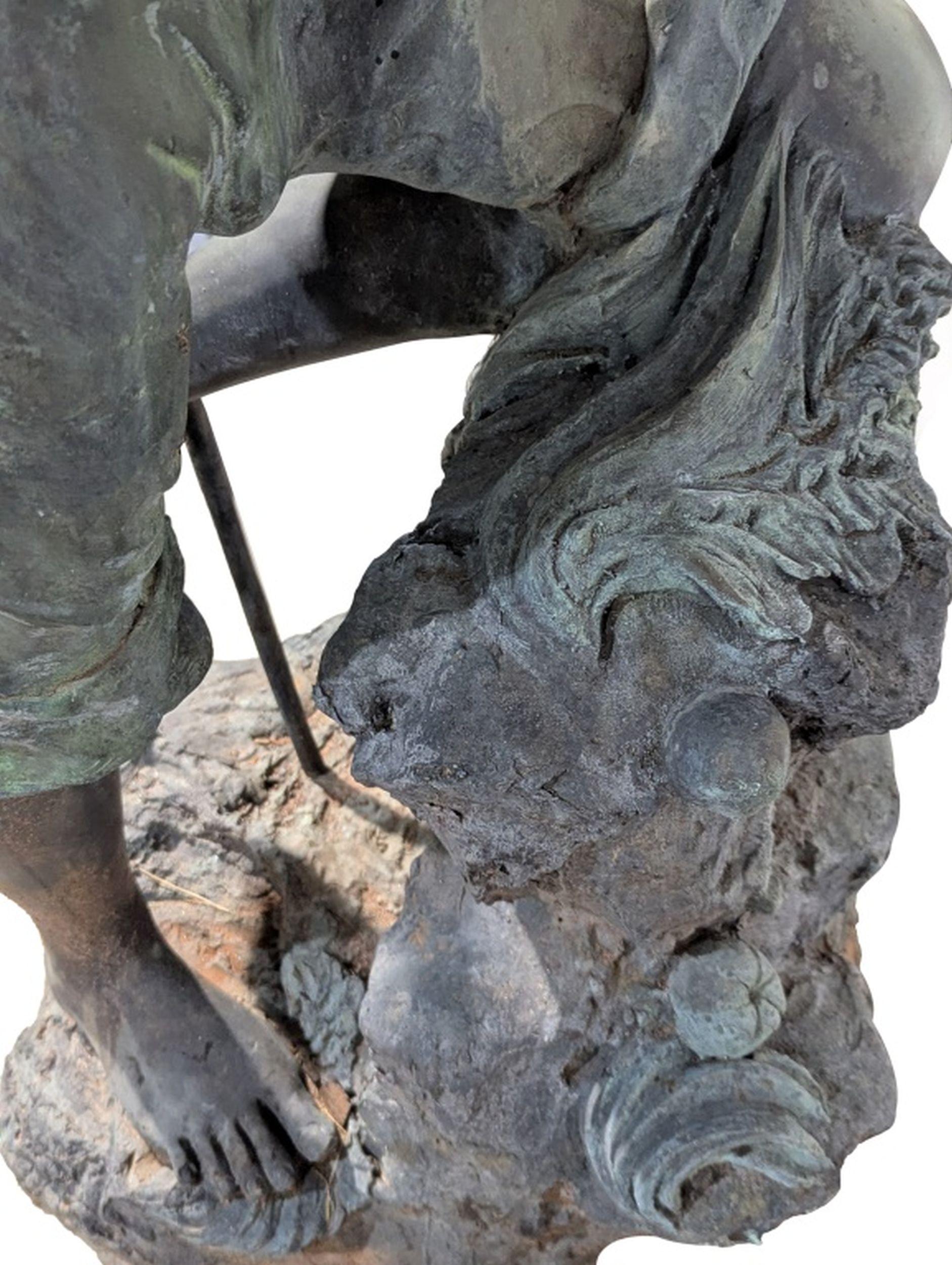 Vintage Patinated Bronze Boy Fisherman Fountain